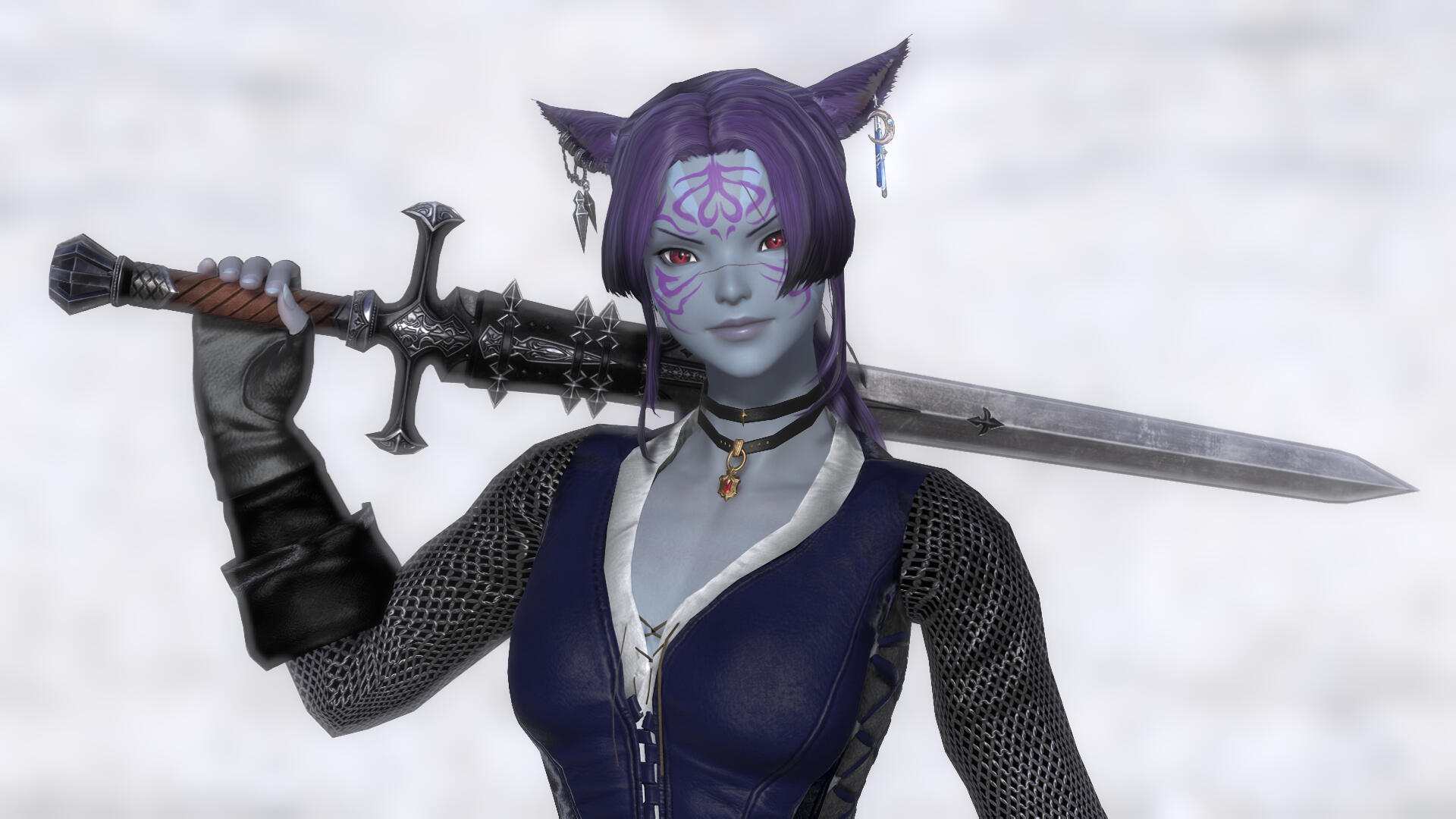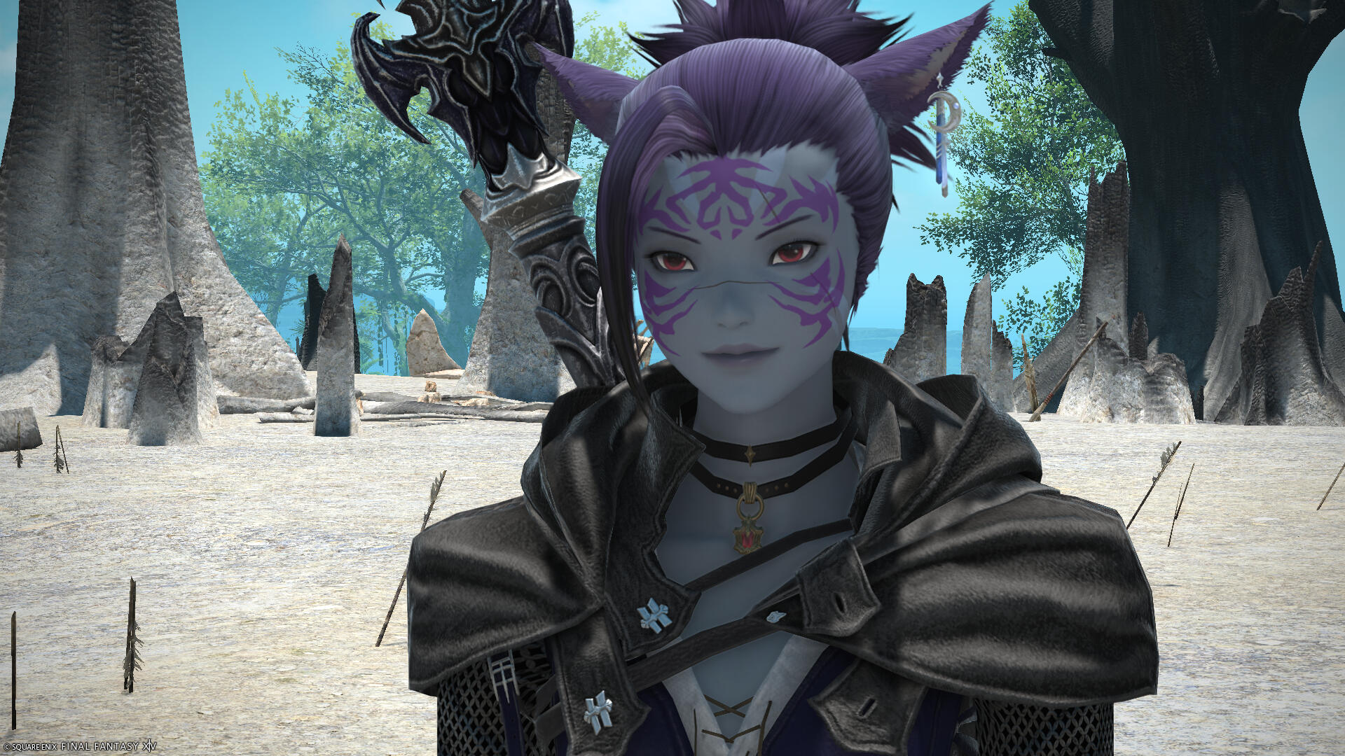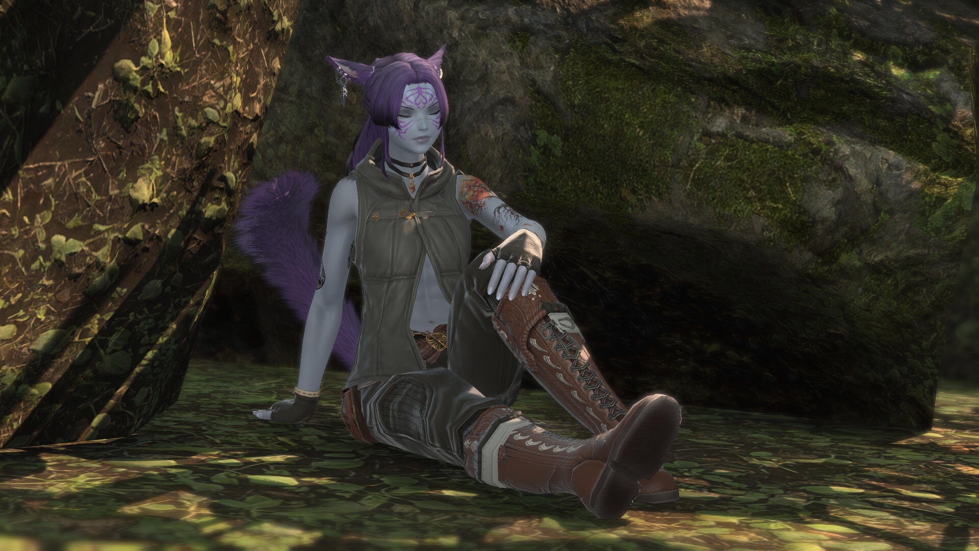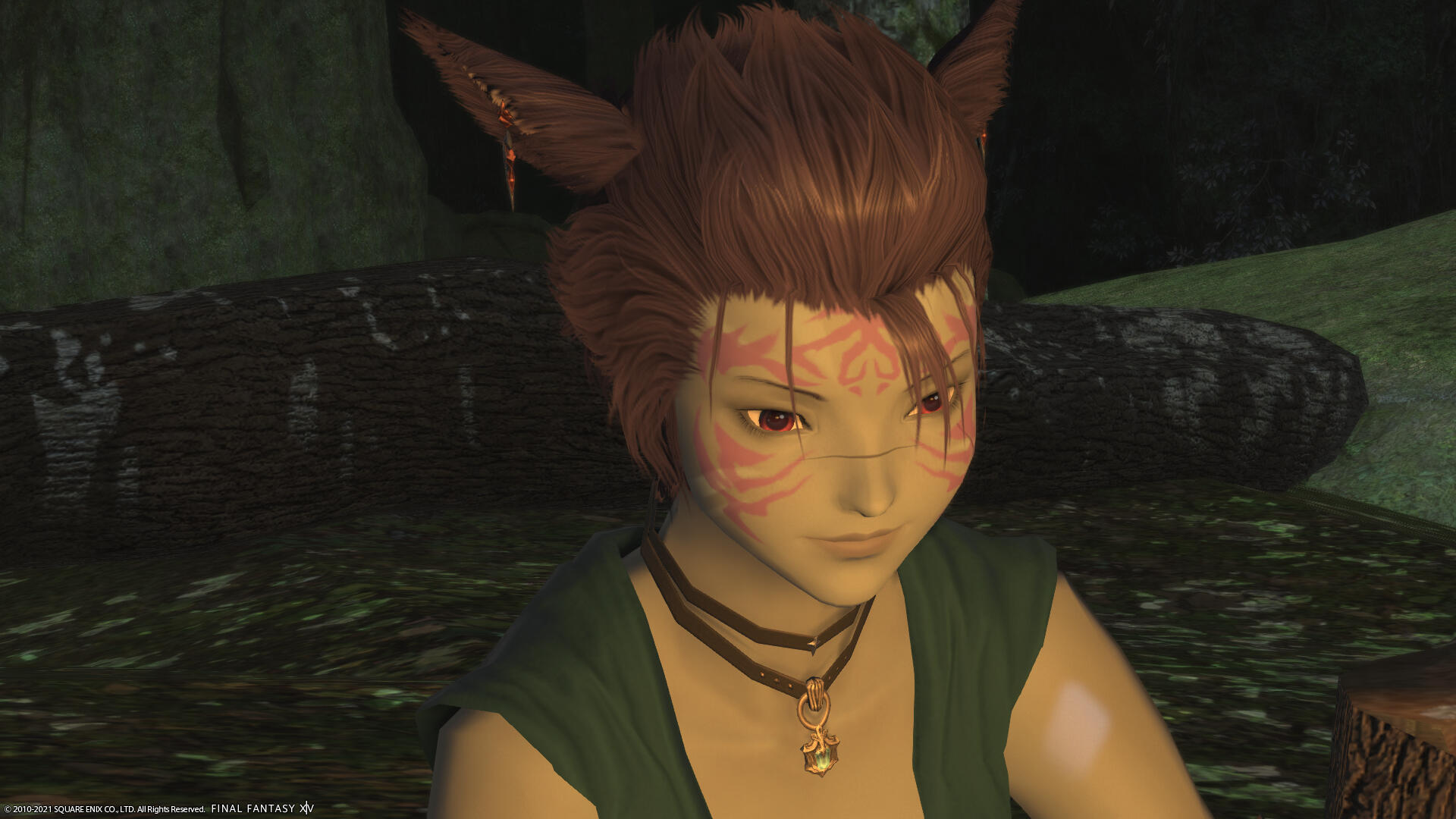 Post Calamity Past: The Shroud The last thing she remembered was looking out of a window in the Twelveswoods with a sense of amazement and terror as she gazed upon the moon which was so close to the world. Then it exploded, sending fragments in all directions. A voice behind her screamed out the name “Saeber” but before she could turn around, she was thrown through the air. There was light and heat; then there was nothing. The first thing she remembered was the throbbing pain in her head. Then, as the rest of her senses awoke, she felt the heat of the fire and smoke filling her lungs. As the flames began to sear the skin on her back, instinct took hold, forcing her to get up and get away. Her body racked in pain she pushed herself to run away from the devastation. She had no idea how long before her injuries took their toll and she collapsed once more into darkness. As she woke sometime later, her head still throbbed, the left side of her face felt slick with blood, and she could barely see out of the eye as it was swelling shut. She dragged herself to a nearby pond, and fear filled her heart when she did not recognize the person staring back at her. All she could remember was a voice calling out “Saeber”. Confused, afraid, and alone she wandered deeper into The Black Shroud with only the vague sense of fear pushing her away from the crater that was once her home. It was not long until Saeber’s body gave out on her once more and she collapsed. Thinking it was the end she let herself fall asleep, for what she thought would be the last time. The next few weeks were completely lost to her, all she could remember was waking up from time to time, feeling like she was moving, and a constant look of a very worried, black haired Miqo’te with azure eyes. It wasn’t until she fully regained consciousness, she started to realize what had happen. The other Miqo’te’s name was Kihvah and she had found Saeber on death’s door. She had treated Saeber’s wounds and cared for her, and she continued to do so for several moons until Saeber’s body had healed enough. Saeber learned that Kihvah was a member of another group of Keepers that lived in the South Shroud, a group named the Coeurlclaws. Kihvah never said much about them but did promise that when Saeber was ready she would bring her to them, so she would have a home. For about a cycle after the Calamity Kihvah cared for Saeber as they became very close friends. Kihvah taught her how to track and hunt, and how to fight with a lance. She would disappear for days, saying she was going back to get supplies and to check up on the rest of the Coreulclaws. One evening, when Kihvah returned, she returned with a ‘gift’ for Saeber, her own Coreulclaw mask. This was the night where Saeber’s life changed for the second time. This was the night she learned who the Coreulclaws were, in particular who the ‘King’ was. Saeber wanted no part of it, and ran, fear and uncertainty gripped her heart. For a sun they hunted her through the southern part of the Shroud, but only one was able to find her, Kihvah. The two fought, and somehow Saeber was able to win the battle, killing her former teacher and friend. Devastated by the betrayal she disappeared into The Shroud. Saeber roamed the forest doing what she could to survive. After what Kihvah had done to her, she was afraid to trust anyone else and was paranoid that anyone who saw her, could just be another Coreulclaw, looking to take her back, or avenge the death of Kihvah. She struck out alone finding, hunting, or stealing food when she could and sheltered in caves and trees away from people. It was only recently, cycles after The Calamity that robbed her of her past, that the questions of who she was started to overcome her fears. So, she headed towards Gridania; perhaps there someone would recognize her, or she could find some clue to her lost memories.