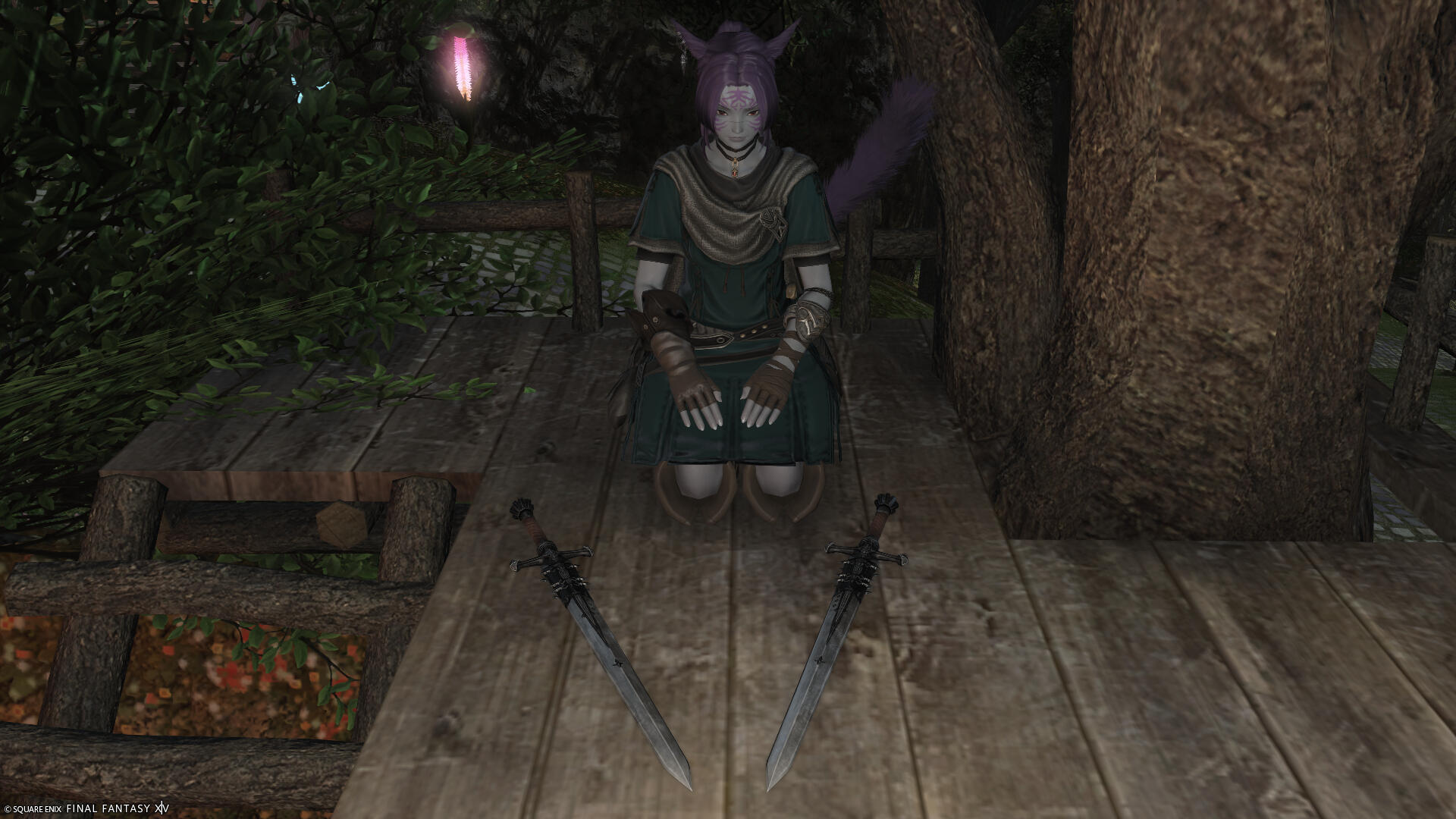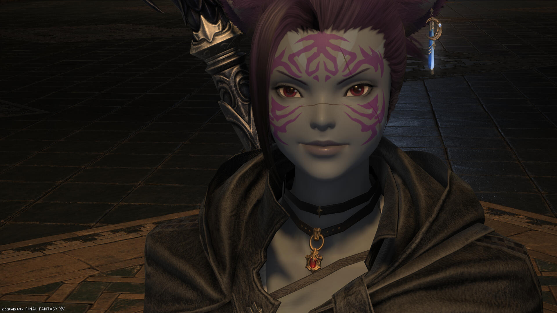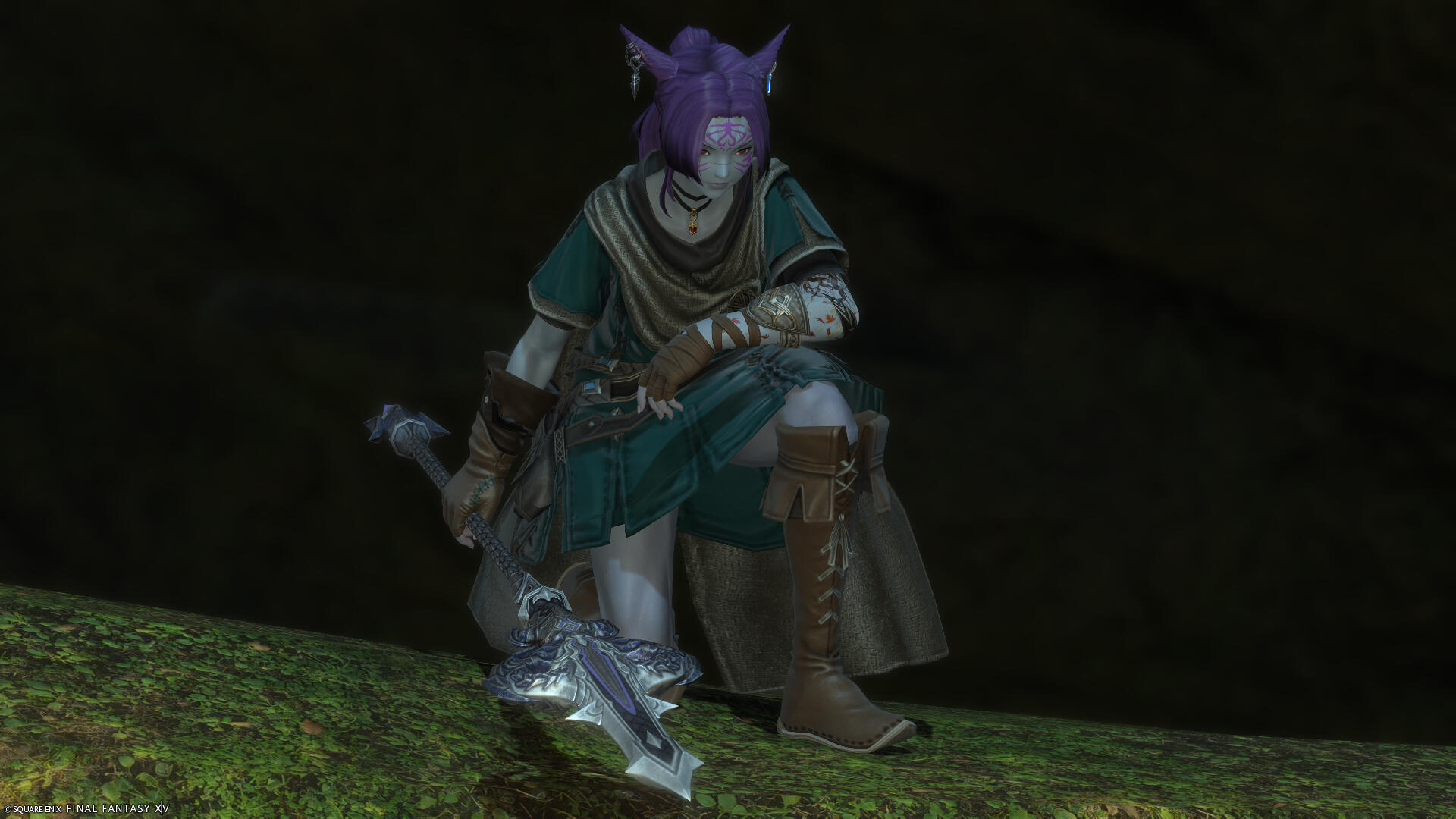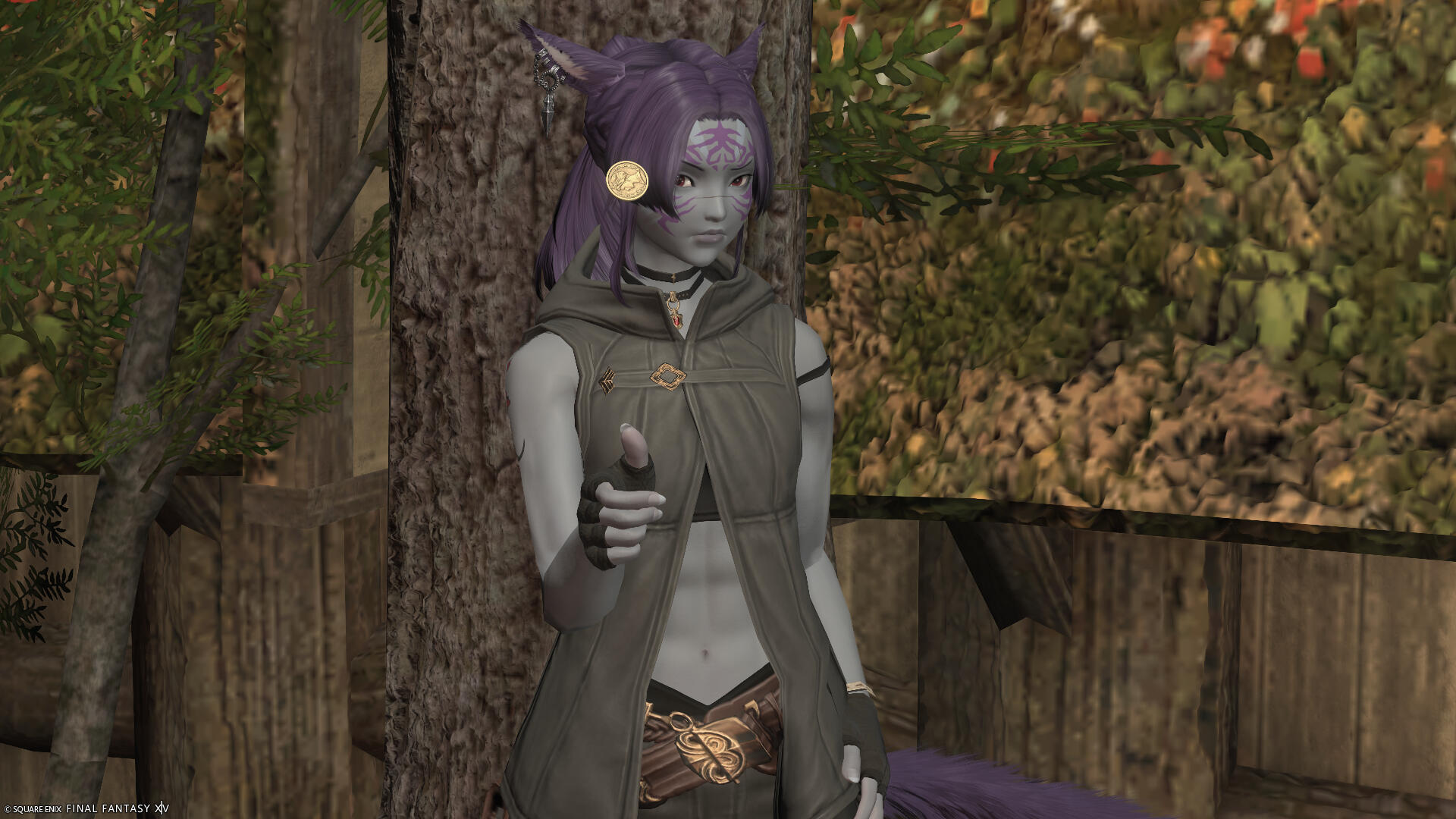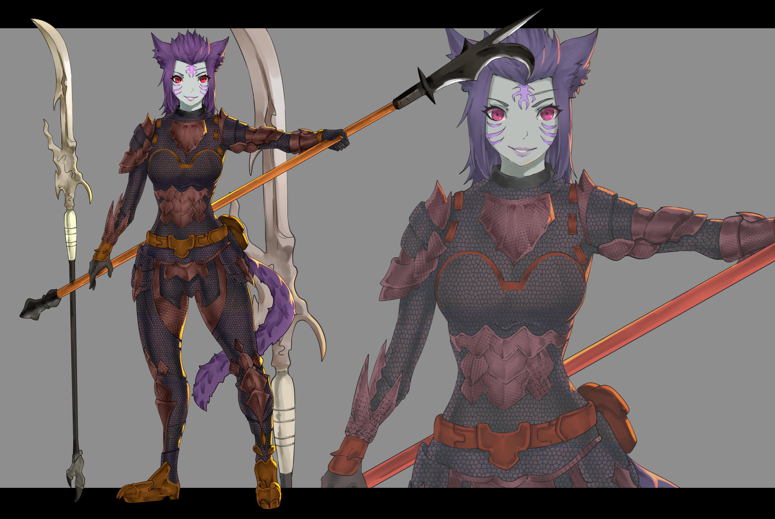 Post Calamity Past: The Shroud The last thing she remembered was looking out of a window in the Twelveswoods with a sense of amazement and terror as she gazed upon the moon which was so close to the world. Then it exploded, sending fragments in all directions. A voice behind her screamed out the name “Saeber” but before she could turn around, she was thrown through the air. There was light and heat; then there was nothing. The first thing she remembered was the throbbing pain in her head. Then, as the rest of her senses awoke, she felt the heat of the fire and smoke filling her lungs. As the flames began to sear the skin on her back, instinct took hold, forcing her to get up and get away. Her body racked in pain she pushed herself to run away from the devastation. She had no idea how long before her injuries took their toll and she collapsed once more into darkness. As she woke sometime later, her head still throbbed, the left side of her face felt slick with blood, and she could barely see out of the eye as it was swelling shut. She dragged herself to a nearby pond, and fear filled her heart when she did not recognize the person staring back at her. All she could remember was a voice calling out “Saeber”. Confused, afraid, and alone she wandered deeper into The Black Shroud with only the vague sense of fear pushing her away from the crater that was once her home. It was not long until Saeber’s body gave out on her once more and she collapsed. Thinking it was the end she let herself fall asleep, for what she thought would be the last time. The next few weeks were completely lost to her, all she could remember was waking up from time to time, feeling like she was moving, and a constant look of a very worried, black haired Miqo’te with azure eyes. It wasn’t until she fully regained consciousness, she started to realize what had happen. The other Miqo’te’s name was Kihvah and she had found Saeber on death’s door. She had treated Saeber’s wounds and cared for her, and she continued to do so for several moons until Saeber’s body had healed enough. Saeber learned that Kihvah was a member of another group of Keepers that lived in the South Shroud, a group named the Coeurlclaws. Kihvah never said much about them but did promise that when Saeber was ready she would bring her to them, so she would have a home. For about a cycle after the Calamity Kihvah cared for Saeber as they became very close friends. Kihvah taught her how to track and hunt, and how to fight with a lance. She would disappear for days, saying she was going back to get supplies and to check up on the rest of the Coreulclaws. One evening, when Kihvah returned, she returned with a ‘gift’ for Saeber, her own Coreulclaw mask. This was the night where Saeber’s life changed for the second time. This was the night she learned who the Coreulclaws were, in particular who the ‘King’ was. Saeber wanted no part of it, and ran, fear and uncertainty gripped her heart. For a sun they hunted her through the southern part of the Shroud, but only one was able to find her, Kihvah. The two fought, and somehow Saeber was able to win the battle, killing her former teacher and friend. Devastated by the betrayal she disappeared into The Shroud. Saeber roamed the forest doing what she could to survive. After what Kihvah had done to her, she was afraid to trust anyone else and was paranoid that anyone who saw her, could just be another Coreulclaw, looking to take her back, or avenge the death of Kihvah. She struck out alone finding, hunting, or stealing food when she could and sheltered in caves and trees away from people. It was only recently, cycles after The Calamity that robbed her of her past, that the questions of who she was started to overcome her fears. So, she headed towards Gridania; perhaps there someone would recognize her, or she could find some clue to her lost memories.
