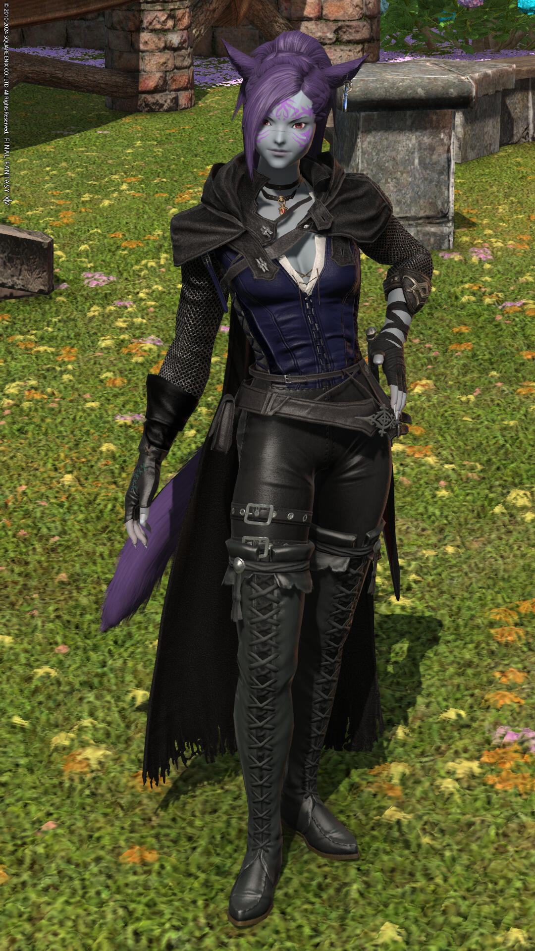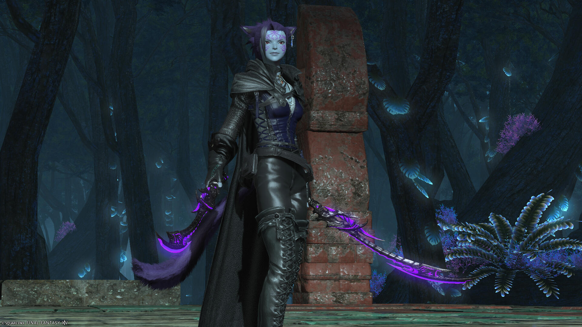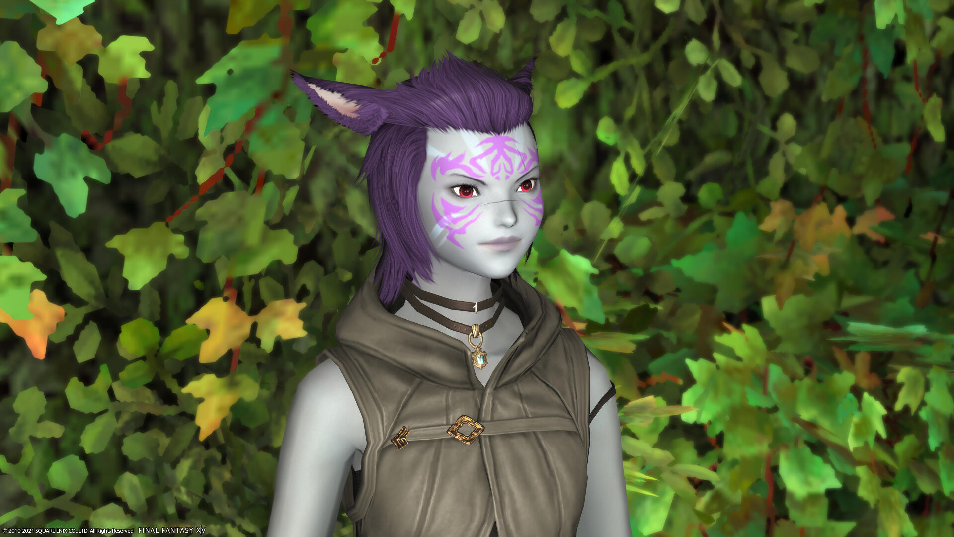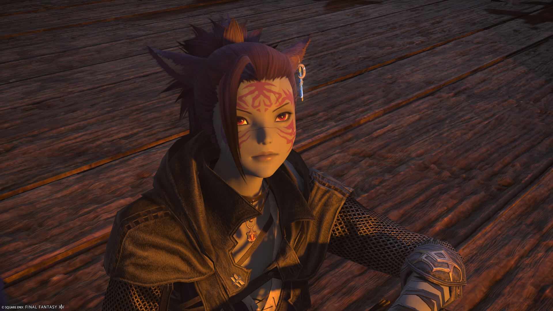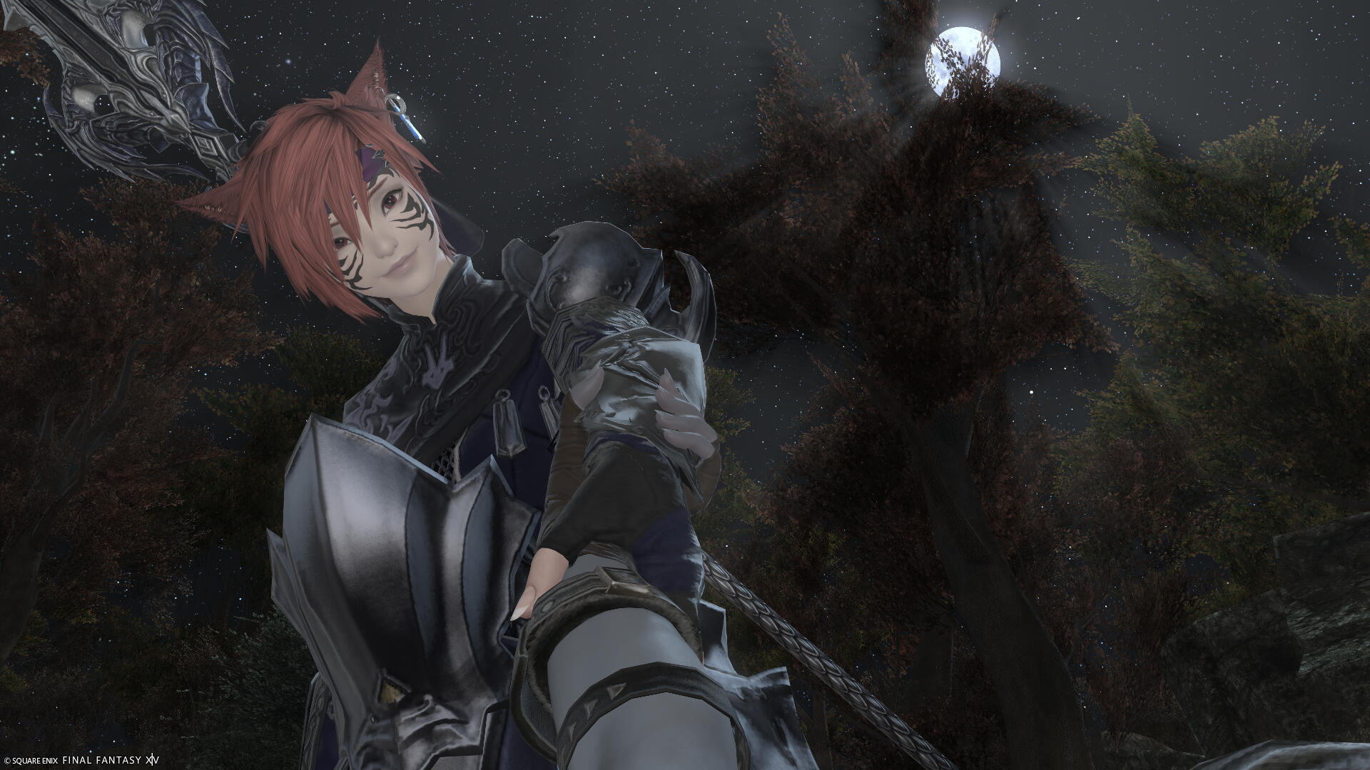 Post Calamity Past: The Shroud The last thing she remembered was looking out of a window in the Twelveswoods with a sense of amazement and terror as she gazed upon the moon which was so close to the world. Then it exploded, sending fragments in all directions. A voice behind her screamed out the name “Saeber” but before she could turn around, she was thrown through the air. There was light and heat; then there was nothing. The first thing she remembered was the throbbing pain in her head. Then, as the rest of her senses awoke, she felt the heat of the fire and smoke filling her lungs. As the flames began to sear the skin on her back, instinct took hold, forcing her to get up and get away. Her body racked in pain she pushed herself to run away from the devastation. She had no idea how long before her injuries took their toll and she collapsed once more into darkness. As she woke sometime later, her head still throbbed, the left side of her face felt slick with blood, and she could barely see out of the eye as it was swelling shut. She dragged herself to a nearby pond, and fear filled her heart when she did not recognize the person staring back at her. All she could remember was a voice calling out “Saeber”. Confused, afraid, and alone she wandered deeper into The Black Shroud with only the vague sense of fear pushing her away from the crater that was once her home. It was not long until Saeber’s body gave out on her once more and she collapsed. Thinking it was the end she let herself fall asleep, for what she thought would be the last time. The next few weeks were completely lost to her, all she could remember was waking up from time to time, feeling like she was moving, and a constant look of a very worried, black haired Miqo’te with azure eyes. It wasn’t until she fully regained consciousness, she started to realize what had happen. The other Miqo’te’s name was Kihvah and she had found Saeber on death’s door. She had treated Saeber’s wounds and cared for her, and she continued to do so for several moons until Saeber’s body had healed enough. Saeber learned that Kihvah was a member of another group of Keepers that lived in the South Shroud, a group named the Coeurlclaws. Kihvah never said much about them but did promise that when Saeber was ready she would bring her to them, so she would have a home. For about a cycle after the Calamity Kihvah cared for Saeber as they became very close friends. Kihvah taught her how to track and hunt, and how to fight with a lance. She would disappear for days, saying she was going back to get supplies and to check up on the rest of the Coreulclaws. One evening, when Kihvah returned, she returned with a ‘gift’ for Saeber, her own Coreulclaw mask. This was the night where Saeber’s life changed for the second time. This was the night she learned who the Coreulclaws were, in particular who the ‘King’ was. Saeber wanted no part of it, and ran, fear and uncertainty gripped her heart. For a sun they hunted her through the southern part of the Shroud, but only one was able to find her, Kihvah. The two fought, and somehow Saeber was able to win the battle, killing her former teacher and friend. Devastated by the betrayal she disappeared into The Shroud. Saeber roamed the forest doing what she could to survive. After what Kihvah had done to her, she was afraid to trust anyone else and was paranoid that anyone who saw her, could just be another Coreulclaw, looking to take her back, or avenge the death of Kihvah. She struck out alone finding, hunting, or stealing food when she could and sheltered in caves and trees away from people. It was only recently, cycles after The Calamity that robbed her of her past, that the questions of who she was started to overcome her fears. So, she headed towards Gridania; perhaps there someone would recognize her, or she could find some clue to her lost memories.