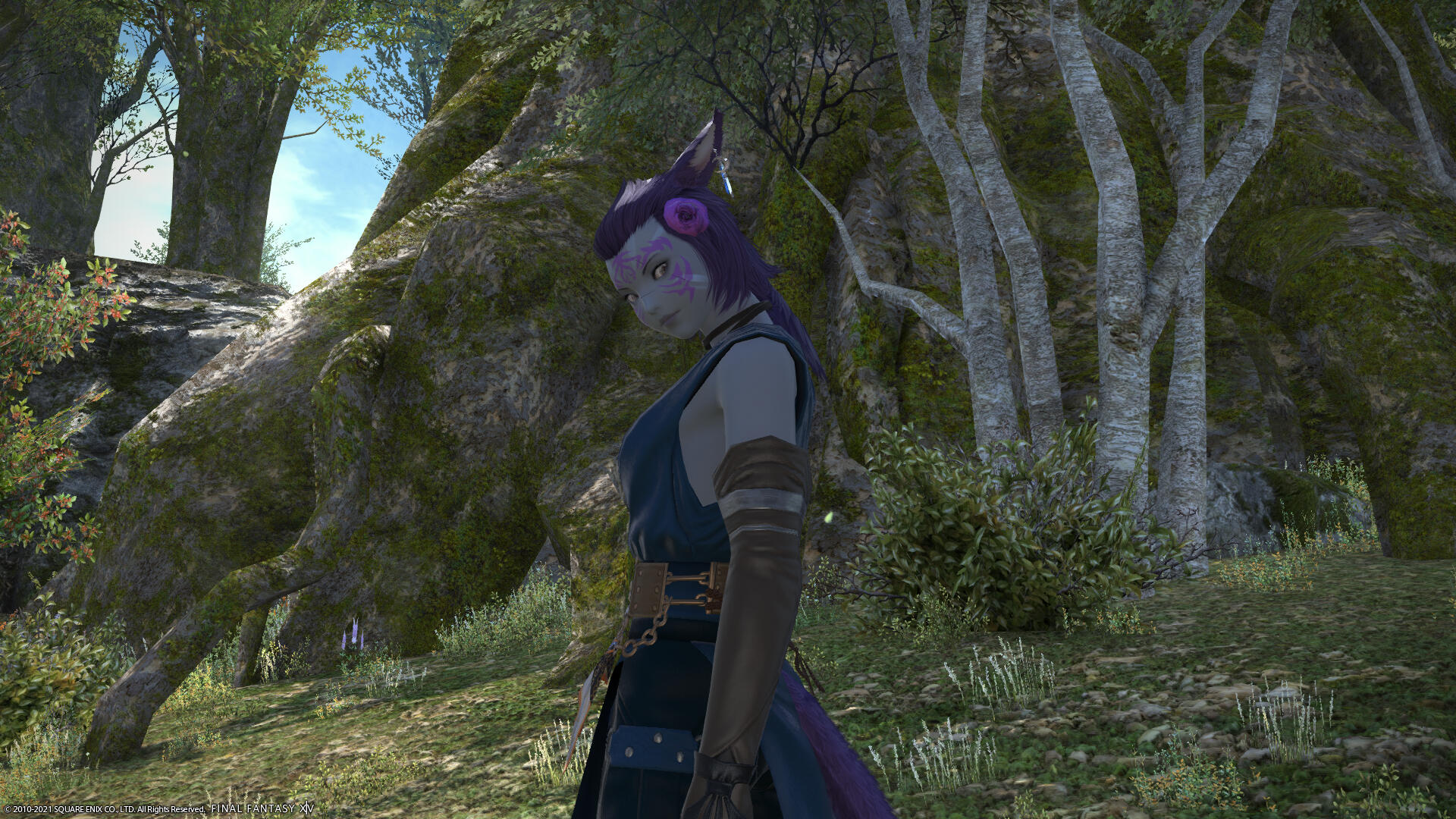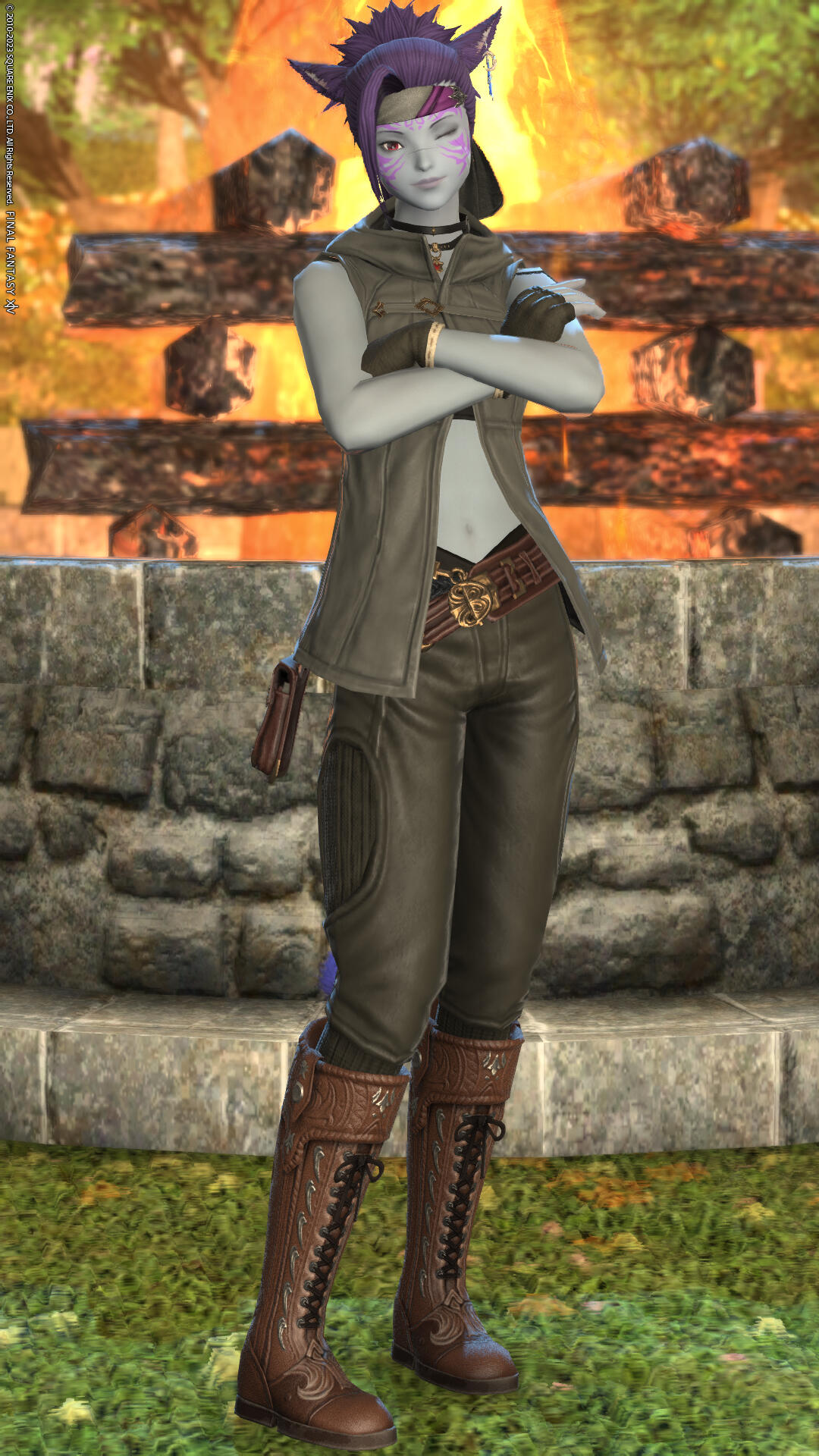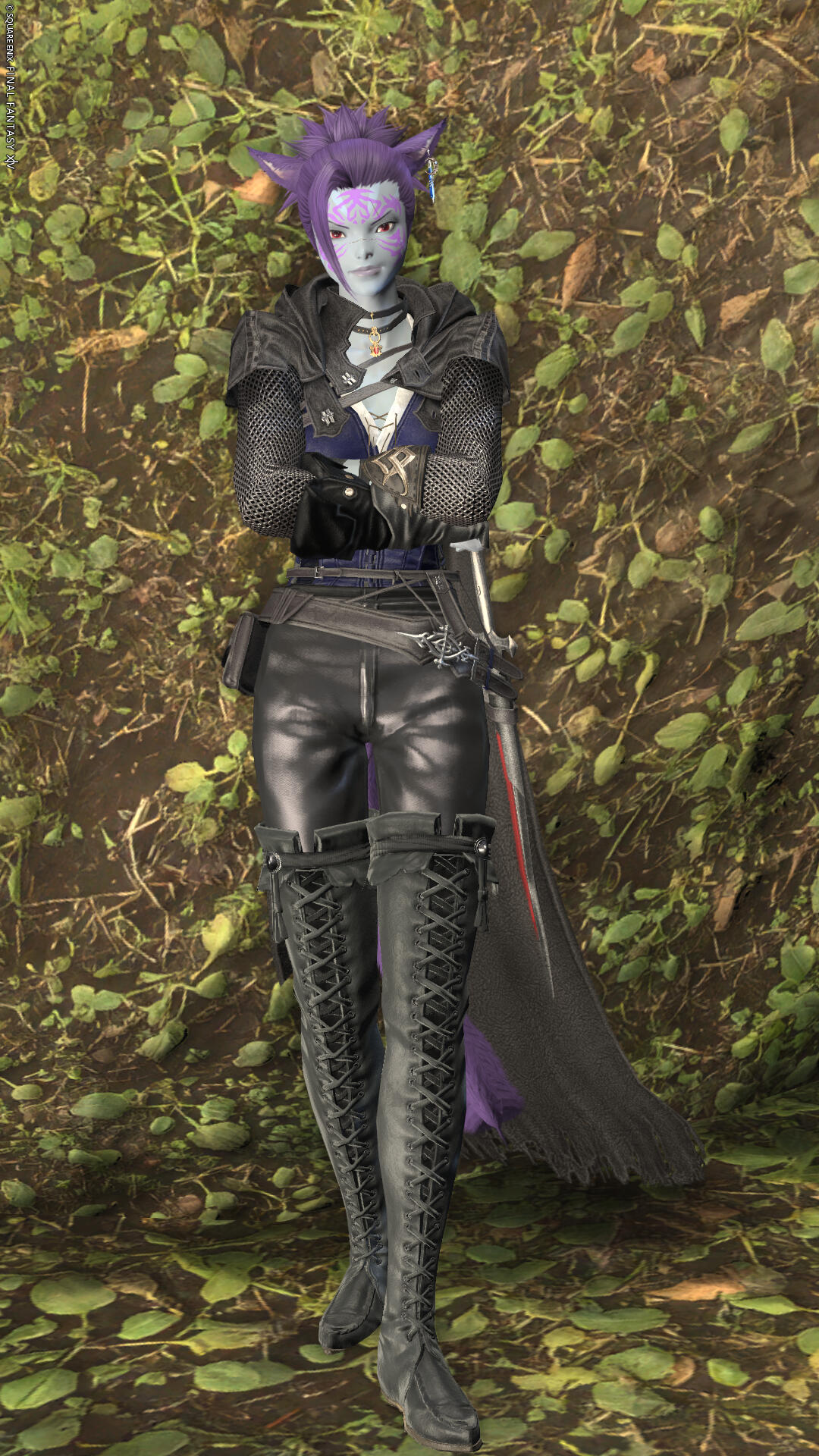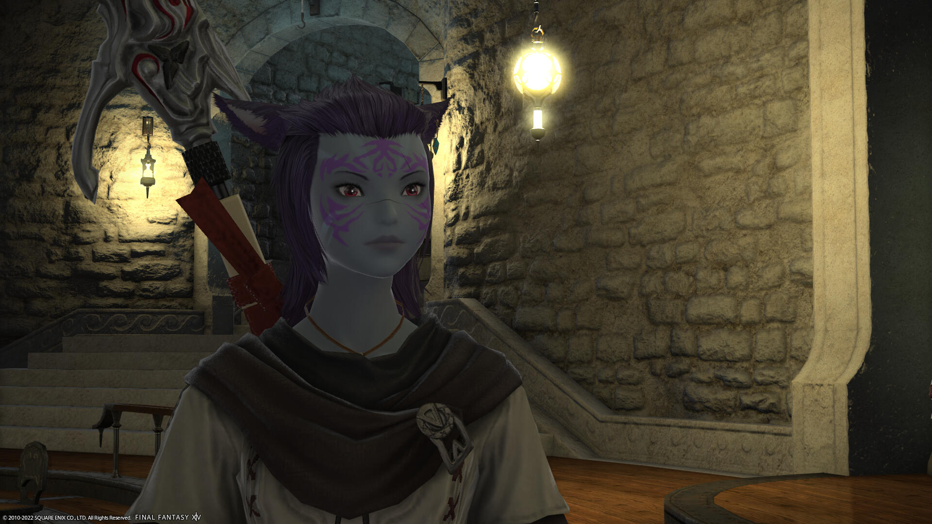 Post Calamity Past: The Shroud The last thing she remembered was looking out of a window in the Twelveswoods with a sense of amazement and terror as she gazed upon the moon which was so close to the world. Then it exploded, sending fragments in all directions. A voice behind her screamed out the name “Saeber” but before she could turn around, she was thrown through the air. There was light and heat; then there was nothing. The first thing she remembered was the throbbing pain in her head. Then, as the rest of her senses awoke, she felt the heat of the fire and smoke filling her lungs. As the flames began to sear the skin on her back, instinct took hold, forcing her to get up and get away. Her body racked in pain she pushed herself to run away from the devastation. She had no idea how long before her injuries took their toll and she collapsed once more into darkness. As she woke sometime later, her head still throbbed, the left side of her face felt slick with blood, and she could barely see out of the eye as it was swelling shut. She dragged herself to a nearby pond, and fear filled her heart when she did not recognize the person staring back at her. All she could remember was a voice calling out “Saeber”. Confused, afraid, and alone she wandered deeper into The Black Shroud with only the vague sense of fear pushing her away from the crater that was once her home. It was not long until Saeber’s body gave out on her once more and she collapsed. Thinking it was the end she let herself fall asleep, for what she thought would be the last time. The next few weeks were completely lost to her, all she could remember was waking up from time to time, feeling like she was moving, and a constant look of a very worried, black haired Miqo’te with azure eyes. It wasn’t until she fully regained consciousness, she started to realize what had happen. The other Miqo’te’s name was Kihvah and she had found Saeber on death’s door. She had treated Saeber’s wounds and cared for her, and she continued to do so for several moons until Saeber’s body had healed enough. Saeber learned that Kihvah was a member of another group of Keepers that lived in the South Shroud, a group named the Coeurlclaws. Kihvah never said much about them but did promise that when Saeber was ready she would bring her to them, so she would have a home. For about a cycle after the Calamity Kihvah cared for Saeber as they became very close friends. Kihvah taught her how to track and hunt, and how to fight with a lance. She would disappear for days, saying she was going back to get supplies and to check up on the rest of the Coreulclaws. One evening, when Kihvah returned, she returned with a ‘gift’ for Saeber, her own Coreulclaw mask. This was the night where Saeber’s life changed for the second time. This was the night she learned who the Coreulclaws were, in particular who the ‘King’ was. Saeber wanted no part of it, and ran, fear and uncertainty gripped her heart. For a sun they hunted her through the southern part of the Shroud, but only one was able to find her, Kihvah. The two fought, and somehow Saeber was able to win the battle, killing her former teacher and friend. Devastated by the betrayal she disappeared into The Shroud. Saeber roamed the forest doing what she could to survive. After what Kihvah had done to her, she was afraid to trust anyone else and was paranoid that anyone who saw her, could just be another Coreulclaw, looking to take her back, or avenge the death of Kihvah. She struck out alone finding, hunting, or stealing food when she could and sheltered in caves and trees away from people. It was only recently, cycles after The Calamity that robbed her of her past, that the questions of who she was started to overcome her fears. So, she headed towards Gridania; perhaps there someone would recognize her, or she could find some clue to her lost memories.