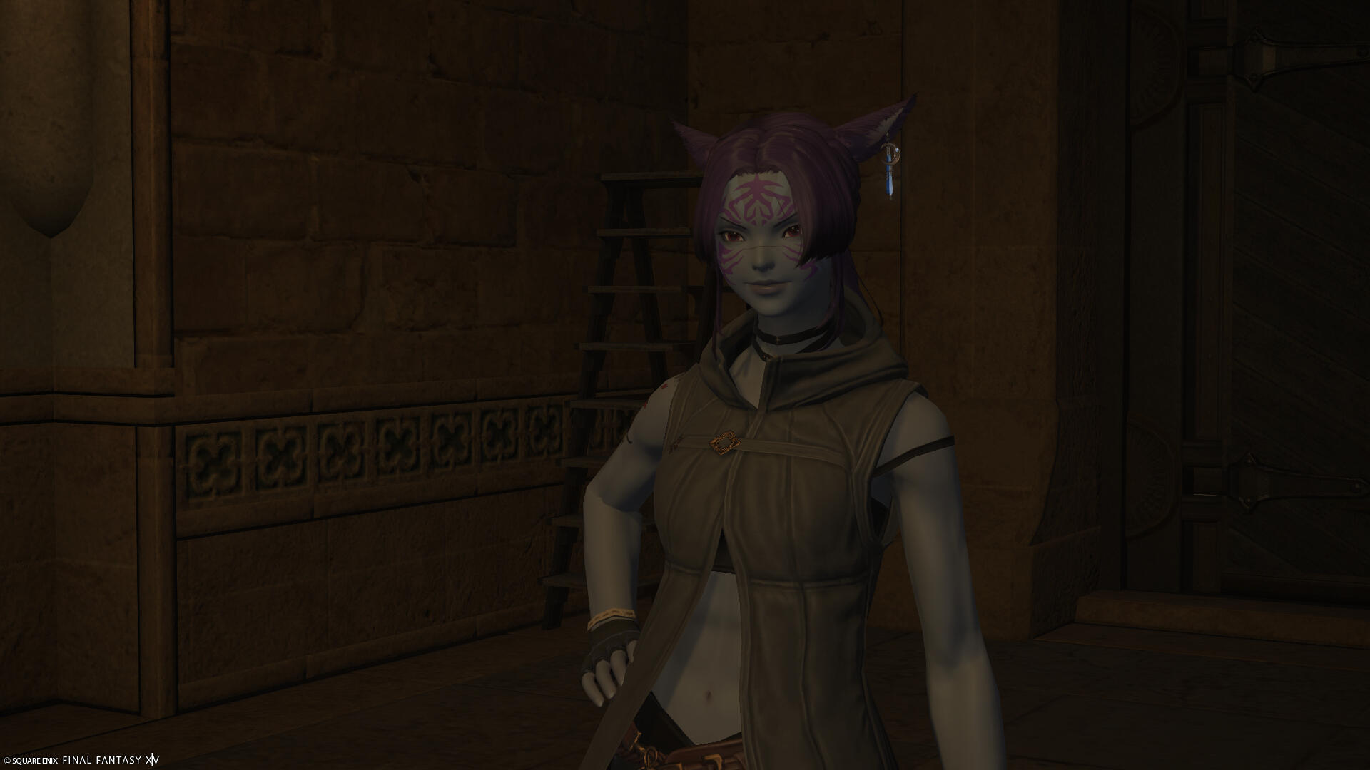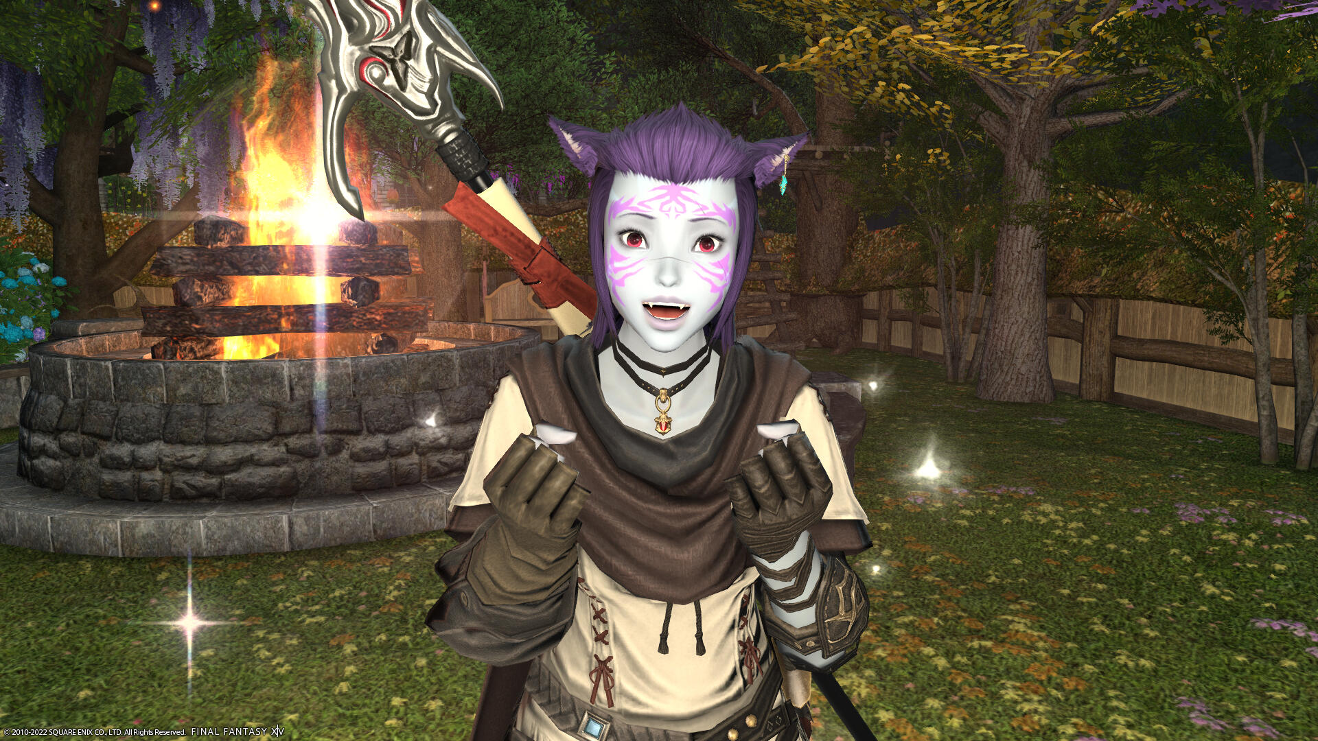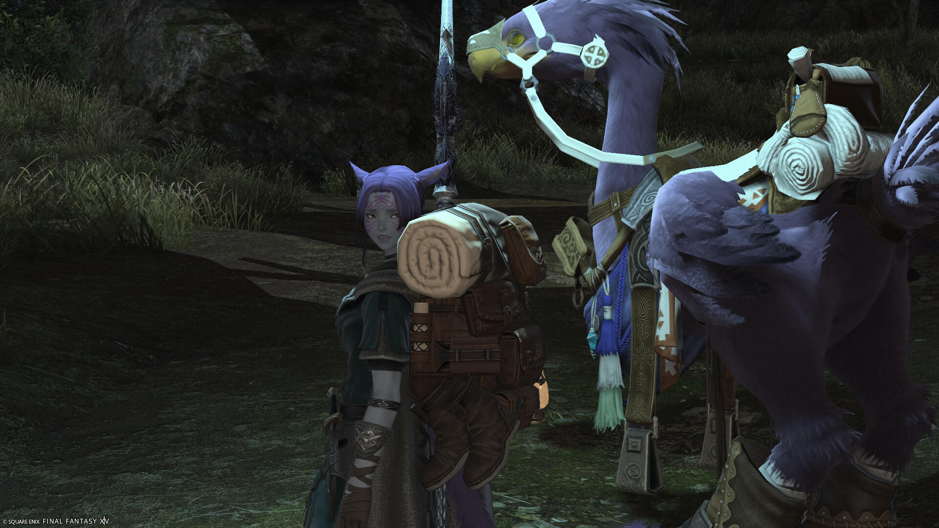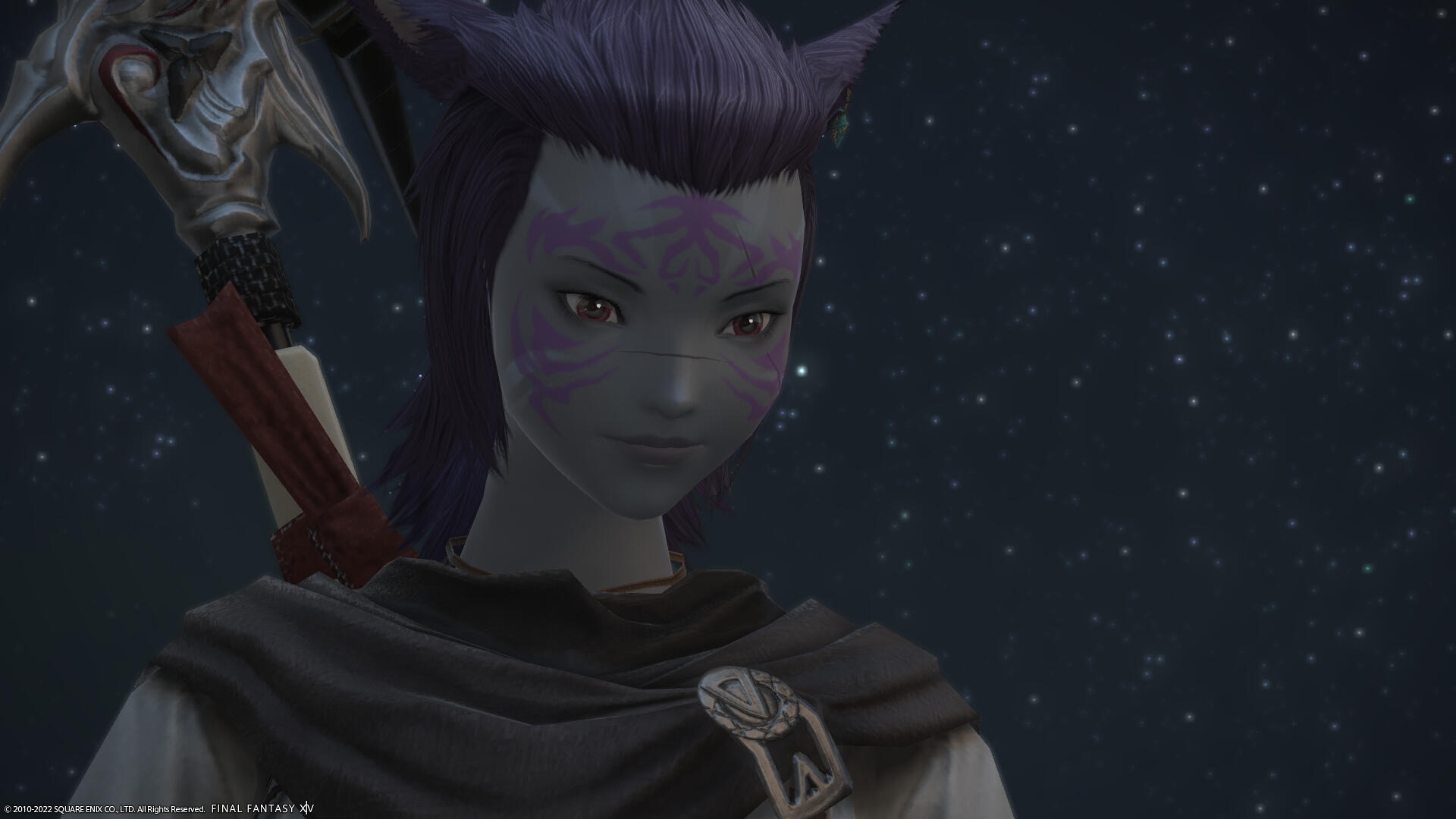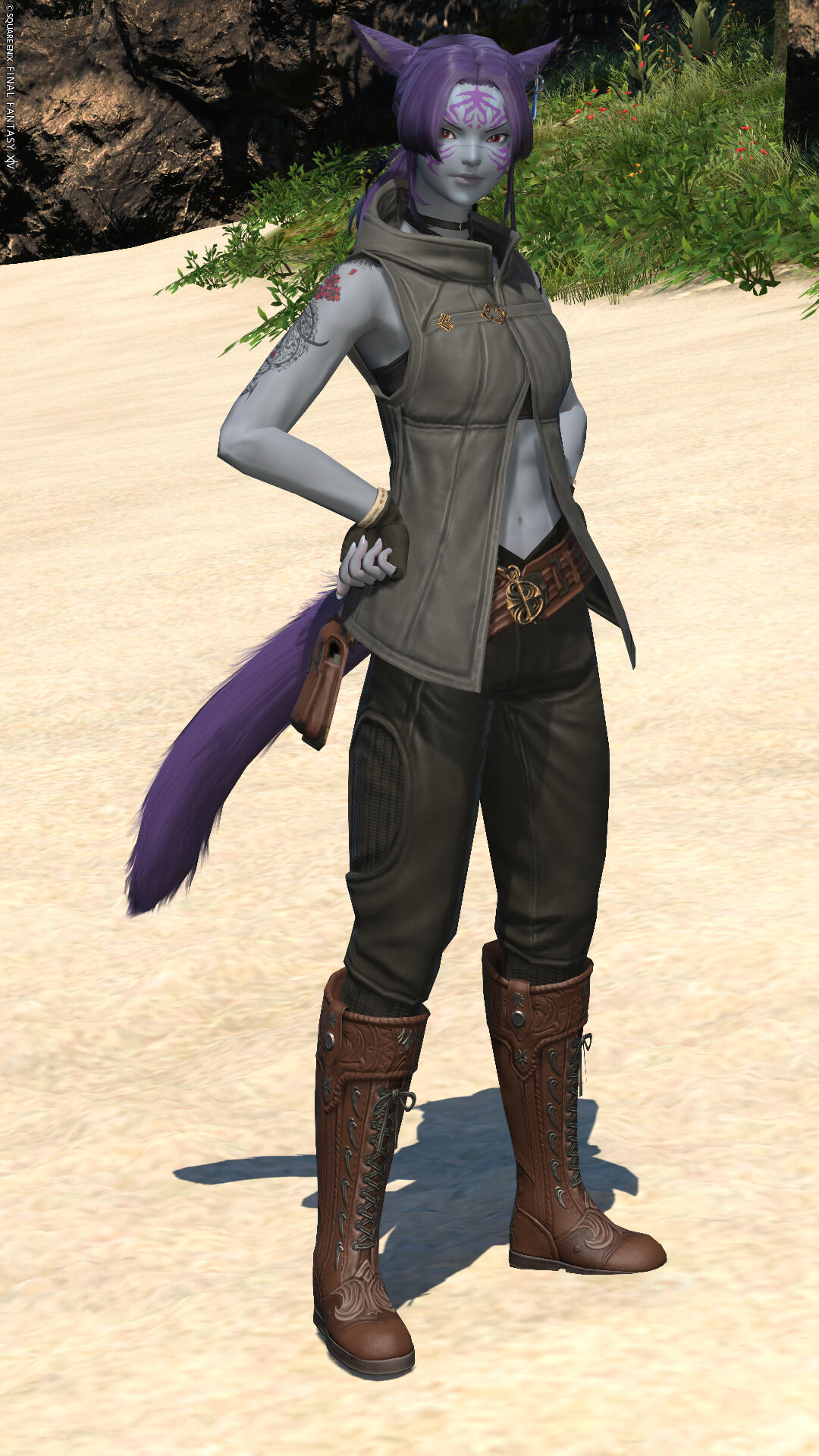 Post Calamity Past: The Shroud The last thing she remembered was looking out of a window in the Twelveswoods with a sense of amazement and terror as she gazed upon the moon which was so close to the world. Then it exploded, sending fragments in all directions. A voice behind her screamed out the name “Saeber” but before she could turn around, she was thrown through the air. There was light and heat; then there was nothing. The first thing she remembered was the throbbing pain in her head. Then, as the rest of her senses awoke, she felt the heat of the fire and smoke filling her lungs. As the flames began to sear the skin on her back, instinct took hold, forcing her to get up and get away. Her body racked in pain she pushed herself to run away from the devastation. She had no idea how long before her injuries took their toll and she collapsed once more into darkness. As she woke sometime later, her head still throbbed, the left side of her face felt slick with blood, and she could barely see out of the eye as it was swelling shut. She dragged herself to a nearby pond, and fear filled her heart when she did not recognize the person staring back at her. All she could remember was a voice calling out “Saeber”. Confused, afraid, and alone she wandered deeper into The Black Shroud with only the vague sense of fear pushing her away from the crater that was once her home. It was not long until Saeber’s body gave out on her once more and she collapsed. Thinking it was the end she let herself fall asleep, for what she thought would be the last time. The next few weeks were completely lost to her, all she could remember was waking up from time to time, feeling like she was moving, and a constant look of a very worried, black haired Miqo’te with azure eyes. It wasn’t until she fully regained consciousness, she started to realize what had happen. The other Miqo’te’s name was Kihvah and she had found Saeber on death’s door. She had treated Saeber’s wounds and cared for her, and she continued to do so for several moons until Saeber’s body had healed enough. Saeber learned that Kihvah was a member of another group of Keepers that lived in the South Shroud, a group named the Coeurlclaws. Kihvah never said much about them but did promise that when Saeber was ready she would bring her to them, so she would have a home. For about a cycle after the Calamity Kihvah cared for Saeber as they became very close friends. Kihvah taught her how to track and hunt, and how to fight with a lance. She would disappear for days, saying she was going back to get supplies and to check up on the rest of the Coreulclaws. One evening, when Kihvah returned, she returned with a ‘gift’ for Saeber, her own Coreulclaw mask. This was the night where Saeber’s life changed for the second time. This was the night she learned who the Coreulclaws were, in particular who the ‘King’ was. Saeber wanted no part of it, and ran, fear and uncertainty gripped her heart. For a sun they hunted her through the southern part of the Shroud, but only one was able to find her, Kihvah. The two fought, and somehow Saeber was able to win the battle, killing her former teacher and friend. Devastated by the betrayal she disappeared into The Shroud. Saeber roamed the forest doing what she could to survive. After what Kihvah had done to her, she was afraid to trust anyone else and was paranoid that anyone who saw her, could just be another Coreulclaw, looking to take her back, or avenge the death of Kihvah. She struck out alone finding, hunting, or stealing food when she could and sheltered in caves and trees away from people. It was only recently, cycles after The Calamity that robbed her of her past, that the questions of who she was started to overcome her fears. So, she headed towards Gridania; perhaps there someone would recognize her, or she could find some clue to her lost memories.