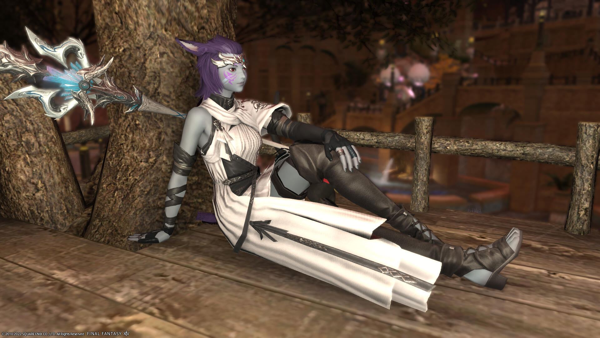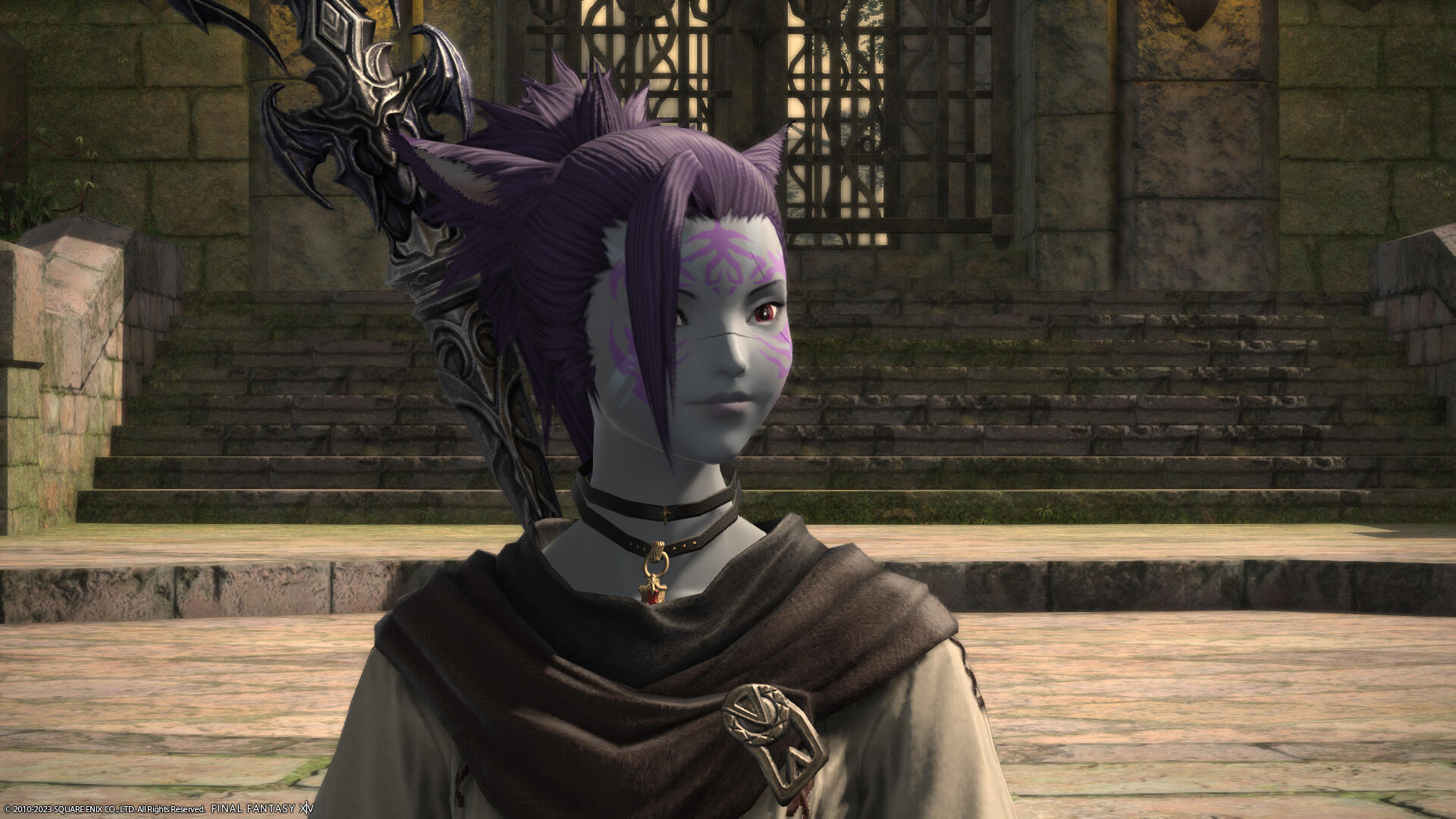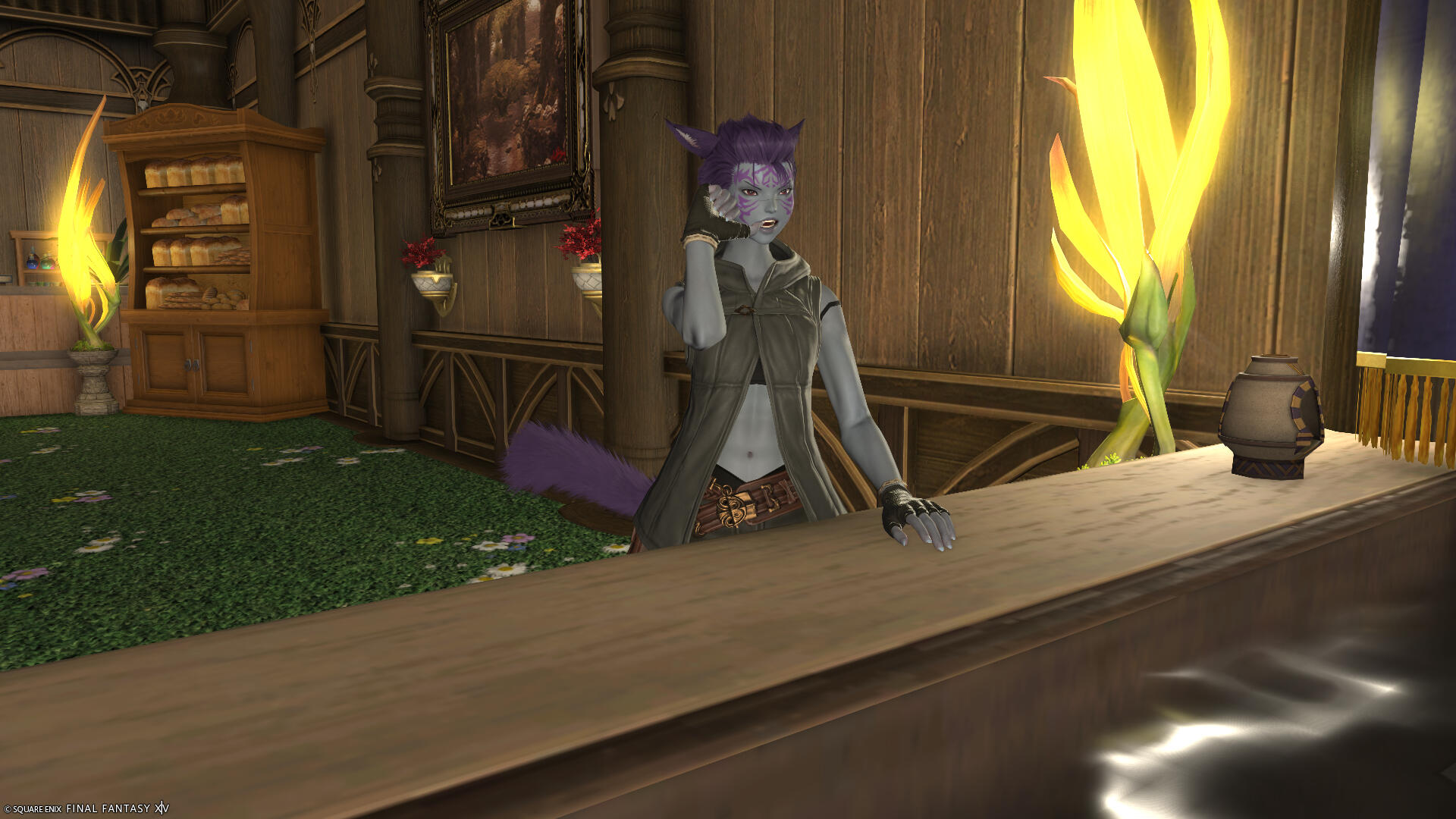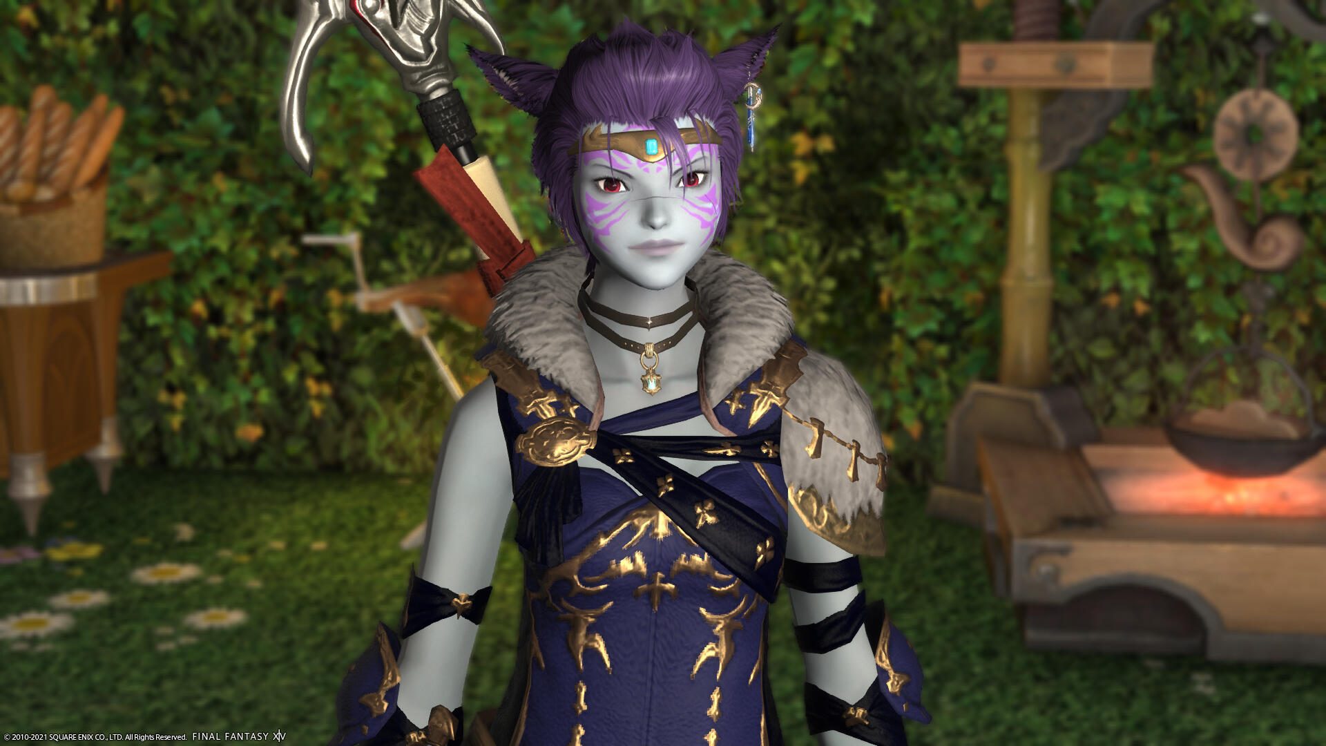 Post Calamity Past: The Shroud The last thing she remembered was looking out of a window in the Twelveswoods with a sense of amazement and terror as she gazed upon the moon which was so close to the world. Then it exploded, sending fragments in all directions. A voice behind her screamed out the name “Saeber” but before she could turn around, she was thrown through the air. There was light and heat; then there was nothing. The first thing she remembered was the throbbing pain in her head. Then, as the rest of her senses awoke, she felt the heat of the fire and smoke filling her lungs. As the flames began to sear the skin on her back, instinct took hold, forcing her to get up and get away. Her body racked in pain she pushed herself to run away from the devastation. She had no idea how long before her injuries took their toll and she collapsed once more into darkness. As she woke sometime later, her head still throbbed, the left side of her face felt slick with blood, and she could barely see out of the eye as it was swelling shut. She dragged herself to a nearby pond, and fear filled her heart when she did not recognize the person staring back at her. All she could remember was a voice calling out “Saeber”. Confused, afraid, and alone she wandered deeper into The Black Shroud with only the vague sense of fear pushing her away from the crater that was once her home. It was not long until Saeber’s body gave out on her once more and she collapsed. Thinking it was the end she let herself fall asleep, for what she thought would be the last time. The next few weeks were completely lost to her, all she could remember was waking up from time to time, feeling like she was moving, and a constant look of a very worried, black haired Miqo’te with azure eyes. It wasn’t until she fully regained consciousness, she started to realize what had happen. The other Miqo’te’s name was Kihvah and she had found Saeber on death’s door. She had treated Saeber’s wounds and cared for her, and she continued to do so for several moons until Saeber’s body had healed enough. Saeber learned that Kihvah was a member of another group of Keepers that lived in the South Shroud, a group named the Coeurlclaws. Kihvah never said much about them but did promise that when Saeber was ready she would bring her to them, so she would have a home. For about a cycle after the Calamity Kihvah cared for Saeber as they became very close friends. Kihvah taught her how to track and hunt, and how to fight with a lance. She would disappear for days, saying she was going back to get supplies and to check up on the rest of the Coreulclaws. One evening, when Kihvah returned, she returned with a ‘gift’ for Saeber, her own Coreulclaw mask. This was the night where Saeber’s life changed for the second time. This was the night she learned who the Coreulclaws were, in particular who the ‘King’ was. Saeber wanted no part of it, and ran, fear and uncertainty gripped her heart. For a sun they hunted her through the southern part of the Shroud, but only one was able to find her, Kihvah. The two fought, and somehow Saeber was able to win the battle, killing her former teacher and friend. Devastated by the betrayal she disappeared into The Shroud. Saeber roamed the forest doing what she could to survive. After what Kihvah had done to her, she was afraid to trust anyone else and was paranoid that anyone who saw her, could just be another Coreulclaw, looking to take her back, or avenge the death of Kihvah. She struck out alone finding, hunting, or stealing food when she could and sheltered in caves and trees away from people. It was only recently, cycles after The Calamity that robbed her of her past, that the questions of who she was started to overcome her fears. So, she headed towards Gridania; perhaps there someone would recognize her, or she could find some clue to her lost memories.