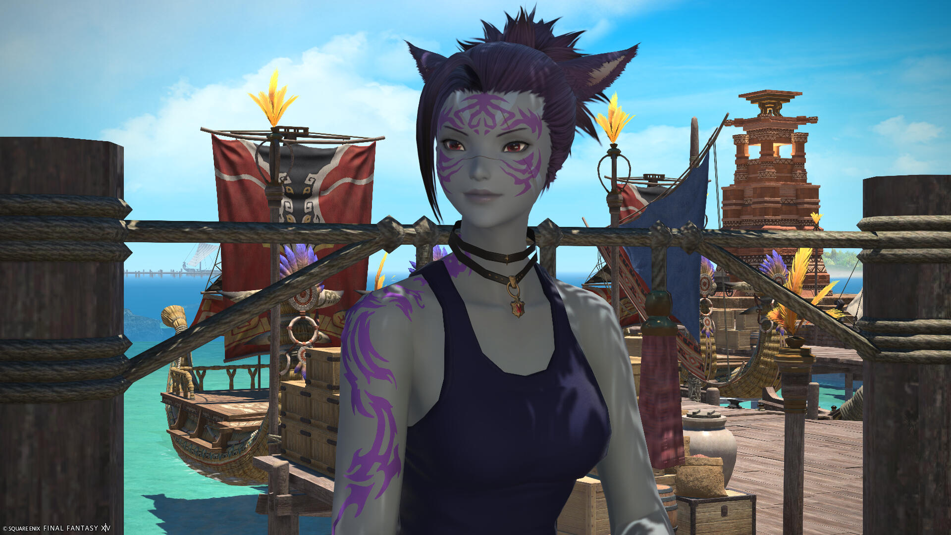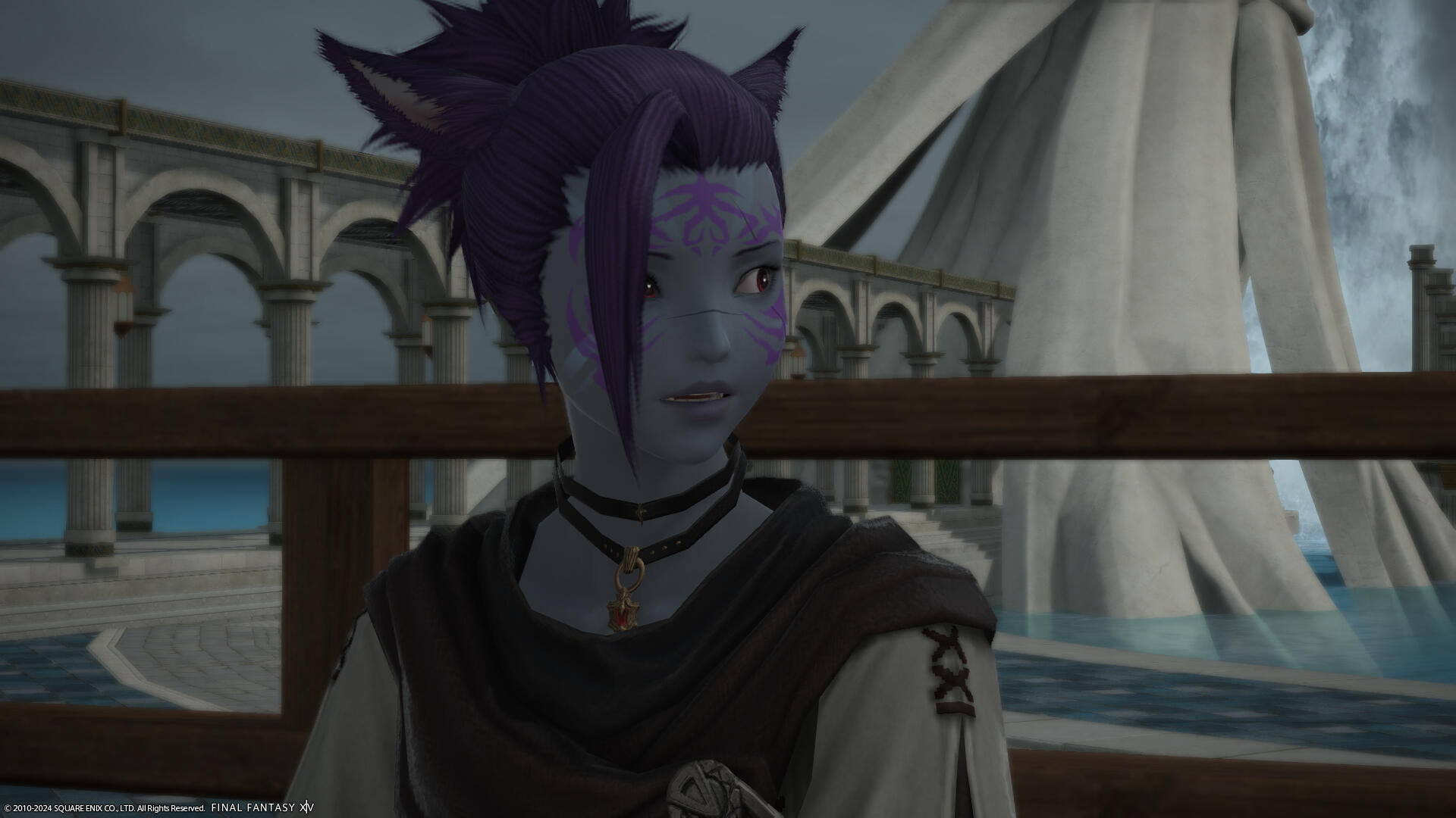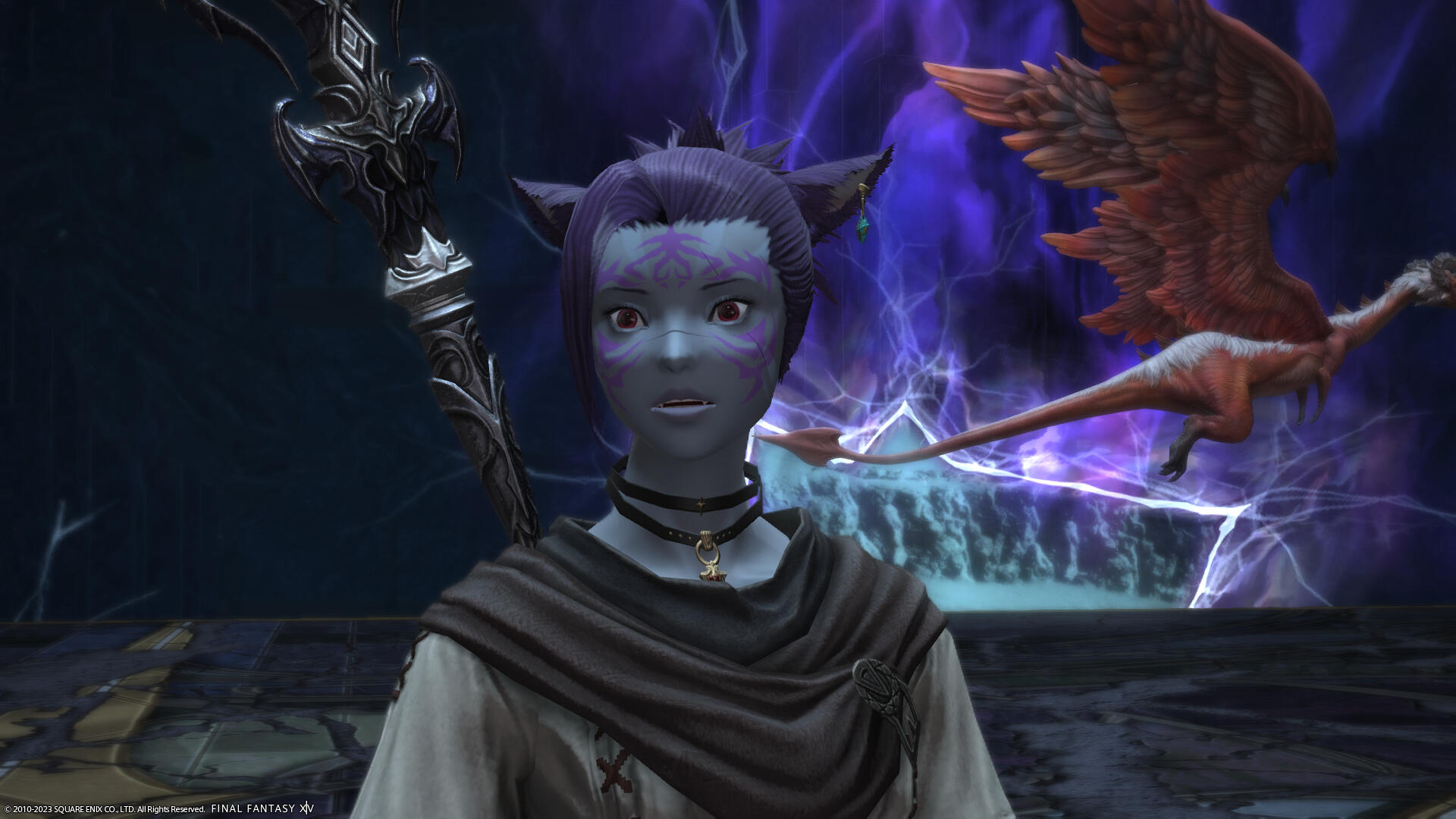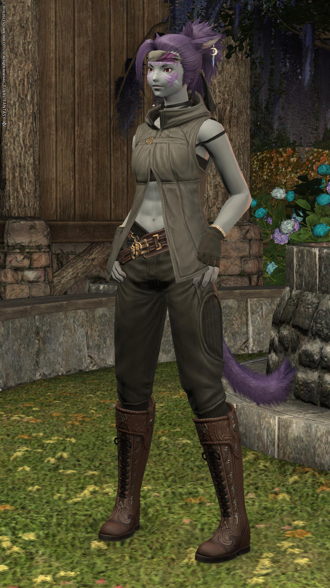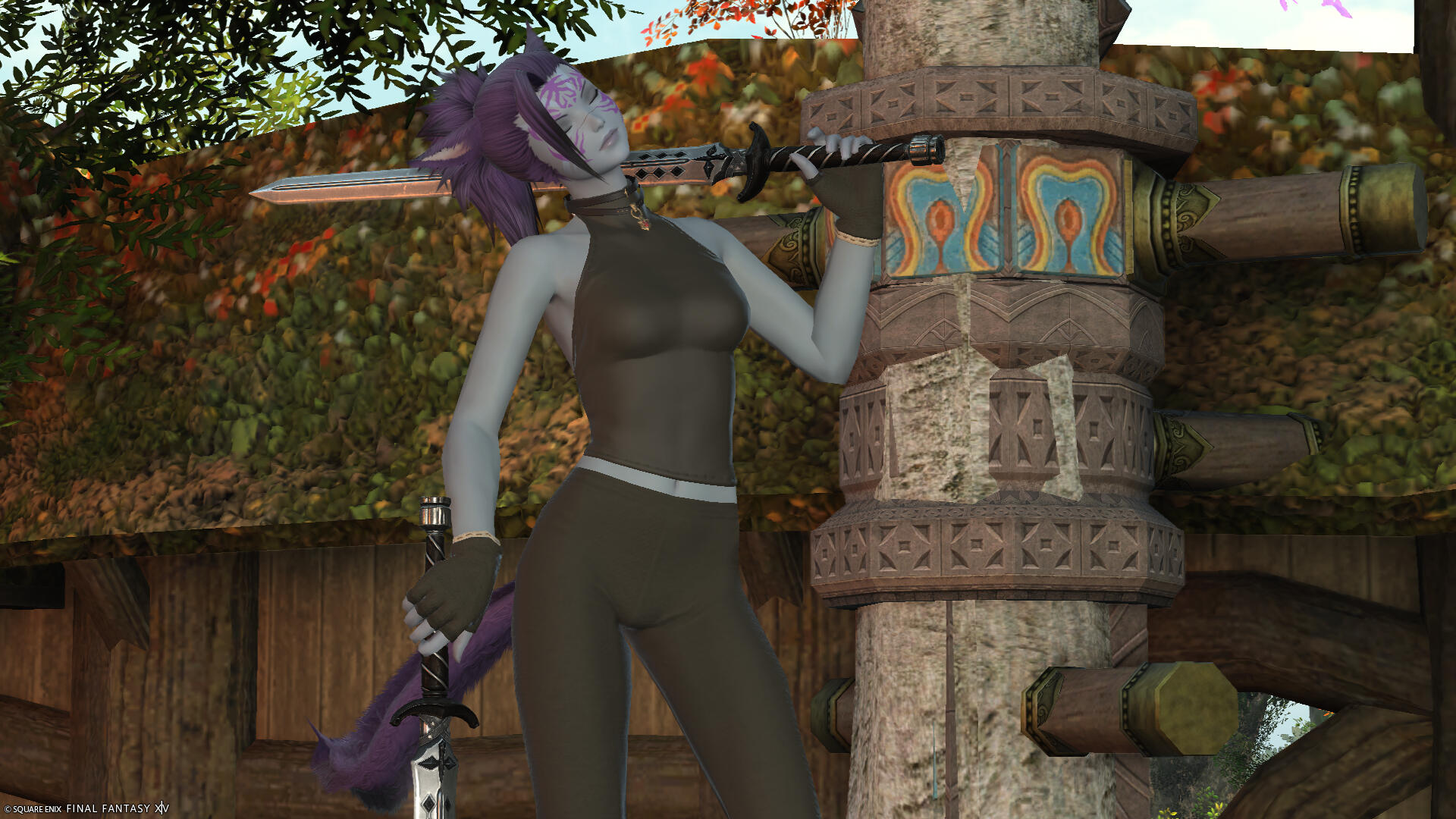 Post Calamity Past: The Shroud The last thing she remembered was looking out of a window in the Twelveswoods with a sense of amazement and terror as she gazed upon the moon which was so close to the world. Then it exploded, sending fragments in all directions. A voice behind her screamed out the name “Saeber” but before she could turn around, she was thrown through the air. There was light and heat; then there was nothing. The first thing she remembered was the throbbing pain in her head. Then, as the rest of her senses awoke, she felt the heat of the fire and smoke filling her lungs. As the flames began to sear the skin on her back, instinct took hold, forcing her to get up and get away. Her body racked in pain she pushed herself to run away from the devastation. She had no idea how long before her injuries took their toll and she collapsed once more into darkness. As she woke sometime later, her head still throbbed, the left side of her face felt slick with blood, and she could barely see out of the eye as it was swelling shut. She dragged herself to a nearby pond, and fear filled her heart when she did not recognize the person staring back at her. All she could remember was a voice calling out “Saeber”. Confused, afraid, and alone she wandered deeper into The Black Shroud with only the vague sense of fear pushing her away from the crater that was once her home. It was not long until Saeber’s body gave out on her once more and she collapsed. Thinking it was the end she let herself fall asleep, for what she thought would be the last time. The next few weeks were completely lost to her, all she could remember was waking up from time to time, feeling like she was moving, and a constant look of a very worried, black haired Miqo’te with azure eyes. It wasn’t until she fully regained consciousness, she started to realize what had happen. The other Miqo’te’s name was Kihvah and she had found Saeber on death’s door. She had treated Saeber’s wounds and cared for her, and she continued to do so for several moons until Saeber’s body had healed enough. Saeber learned that Kihvah was a member of another group of Keepers that lived in the South Shroud, a group named the Coeurlclaws. Kihvah never said much about them but did promise that when Saeber was ready she would bring her to them, so she would have a home. For about a cycle after the Calamity Kihvah cared for Saeber as they became very close friends. Kihvah taught her how to track and hunt, and how to fight with a lance. She would disappear for days, saying she was going back to get supplies and to check up on the rest of the Coreulclaws. One evening, when Kihvah returned, she returned with a ‘gift’ for Saeber, her own Coreulclaw mask. This was the night where Saeber’s life changed for the second time. This was the night she learned who the Coreulclaws were, in particular who the ‘King’ was. Saeber wanted no part of it, and ran, fear and uncertainty gripped her heart. For a sun they hunted her through the southern part of the Shroud, but only one was able to find her, Kihvah. The two fought, and somehow Saeber was able to win the battle, killing her former teacher and friend. Devastated by the betrayal she disappeared into The Shroud. Saeber roamed the forest doing what she could to survive. After what Kihvah had done to her, she was afraid to trust anyone else and was paranoid that anyone who saw her, could just be another Coreulclaw, looking to take her back, or avenge the death of Kihvah. She struck out alone finding, hunting, or stealing food when she could and sheltered in caves and trees away from people. It was only recently, cycles after The Calamity that robbed her of her past, that the questions of who she was started to overcome her fears. So, she headed towards Gridania; perhaps there someone would recognize her, or she could find some clue to her lost memories.