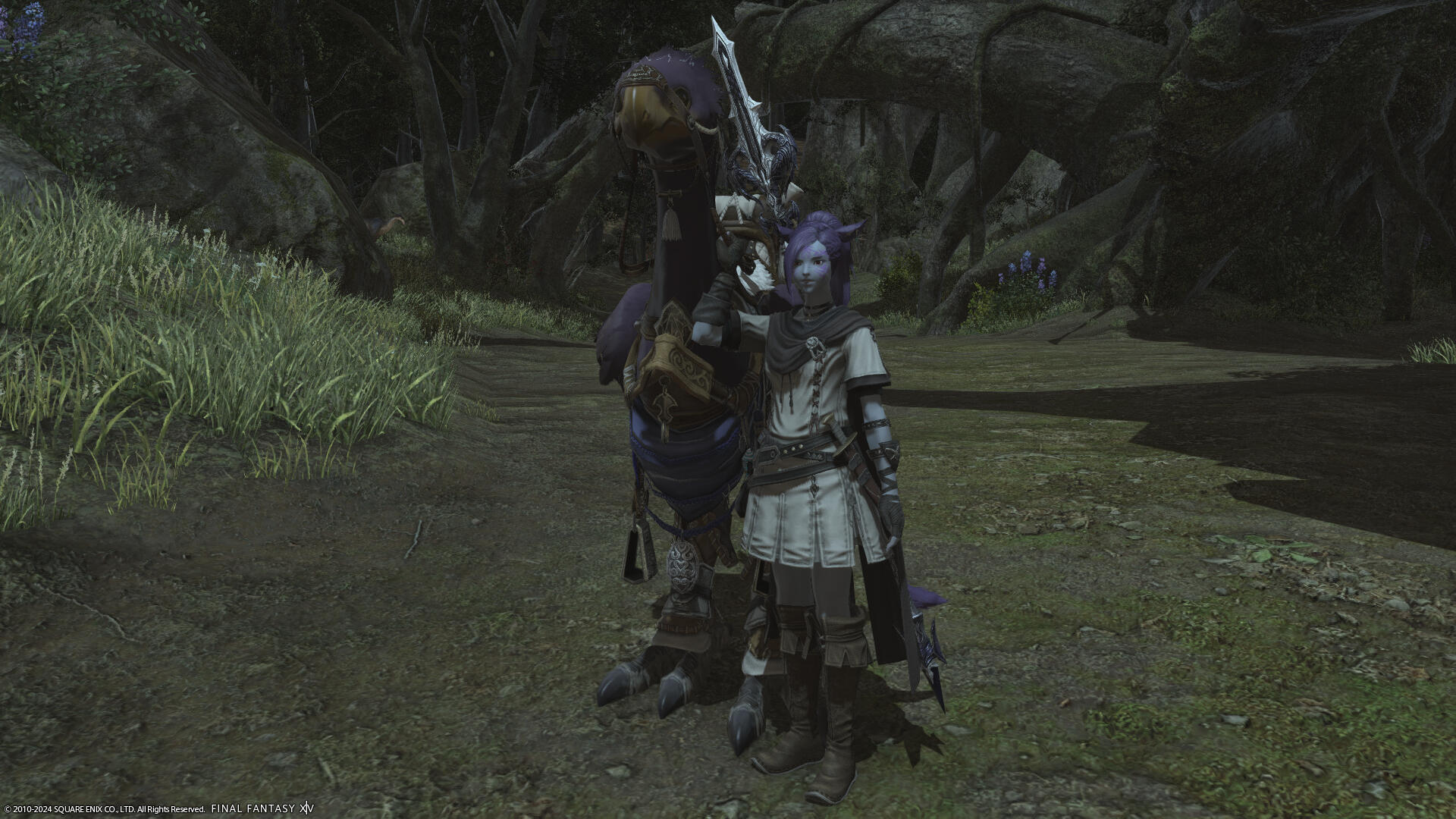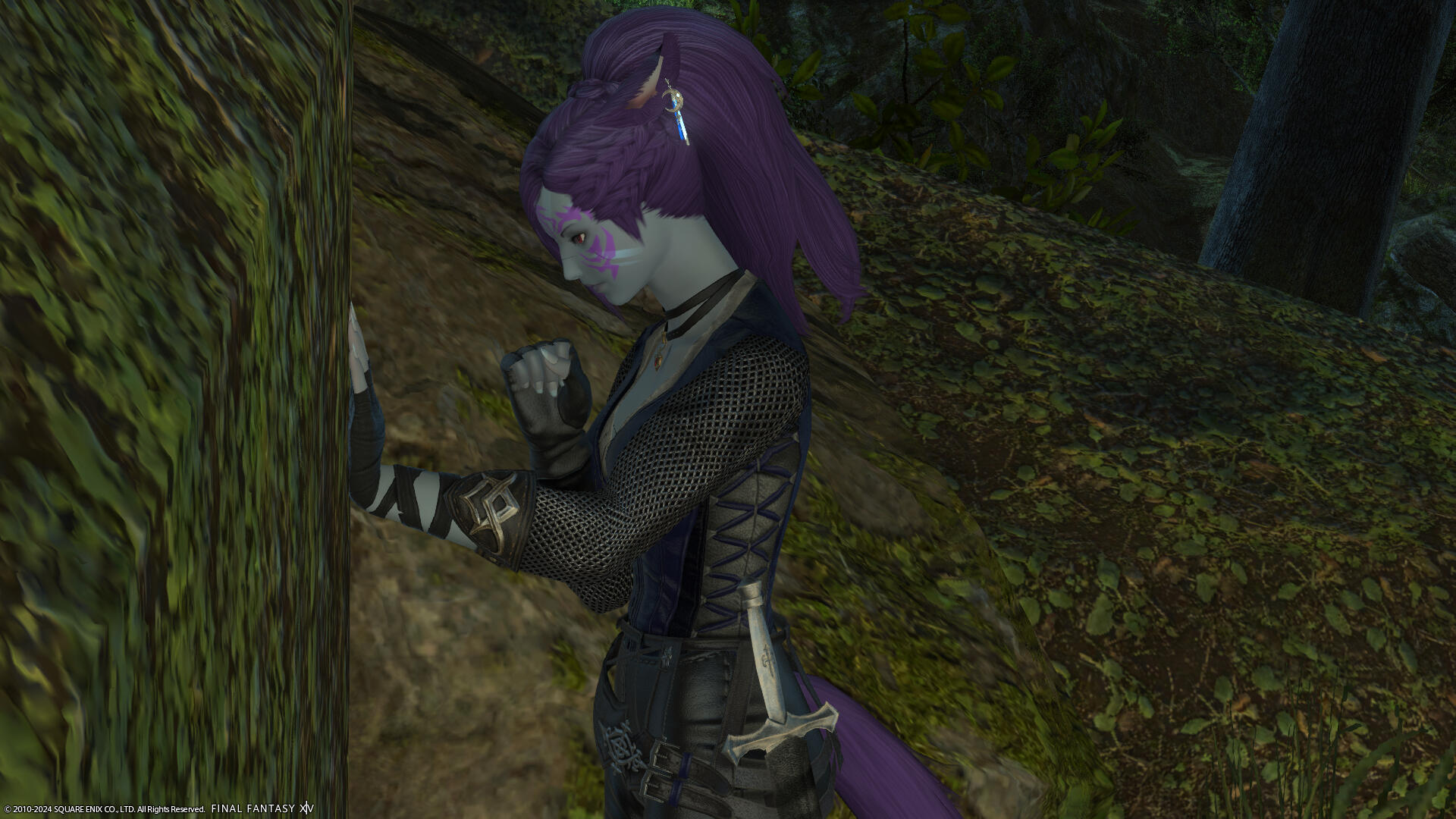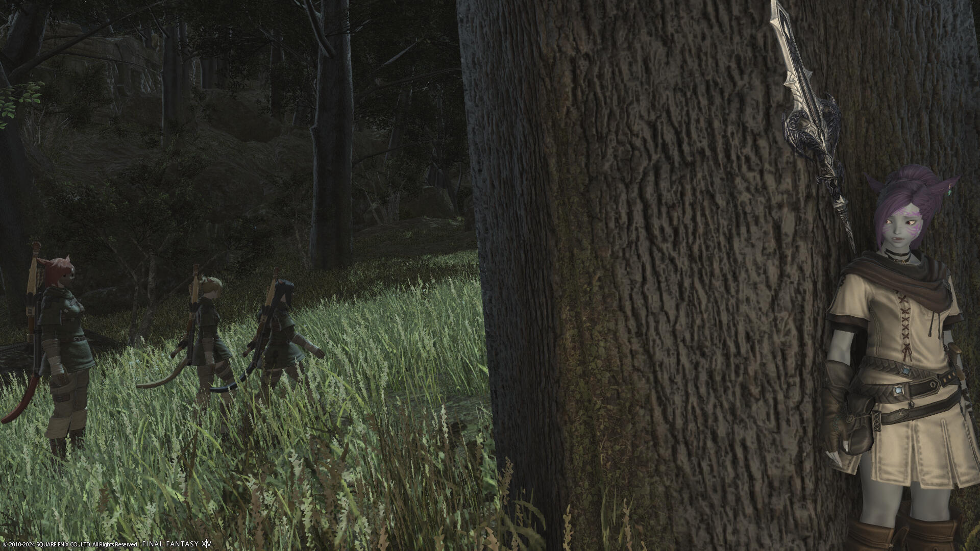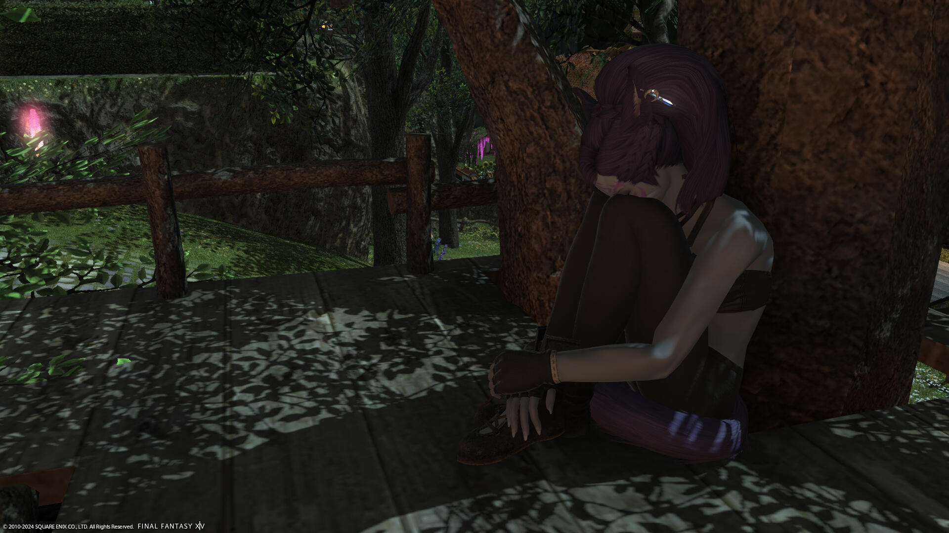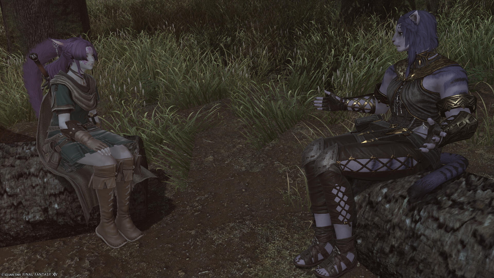 Saeber Hun’lyl” The bottom of the paper is stained by what appears to be a few drops of water, still a little wet as if the letter was placed not too long ago. Her signature was even smeared by the stain. A glance out a nearby window reveals a figure standing at the entrance of the gate, a purple chocobo standing beside her. She rubs at her eyes as she hesitates, standing there looking back at the house, as if she is still trying to decide if she can take those next few steps, before finally turning and disappearing into the darkness of the night. It was only a few hours after Saeber had left the glade that her new family called home that she was found on the road. Jhogu’ra had found her letter and sought her out. The young couple, who had only recently opened their hearts to each other, argued back and forth, the first time she had raised her voice or snapped at him. But he refused to let her go alone, and she eventually relented, with his word that when they reached their destination, he had to listen to her. That out of respect to her former clan, if she asked him to not follow her, he must listen. After a moment in each other’s arms, and a small weight lifted from Saeber’s chest that she wouldn’t be alone, the two set off, turning towards the north. It was a long and arduous journey. What should have taken a few days, a week, to travel from their home in the southern reaches of the Shroud, to the area marked on Saeber’s map in the far northern reaches, took weeks instead. As Jhogu’ra and Saeber entered the wilderness, Saeber’s headaches progressively got worse, sometimes delaying them for a day while she recovered. At no point though would she entertain the thought of turning back. She was determined to see this through, no matter how much pain it was putting her through. As they neared the point of the map, following the river northwards, evidence of the destruction in the region was clear. Now rotted trunks of trees that had been knocked down from the force of the impact that destroyed the Hun’lyl home. But amidst all the ruin, new life was starting to take hold. Grasses and young trees had sprouted and grown in the cycles since the moon fell. The downed trees were helpful in another way. It gave them a direction to go, since they all pointed radially away from where the Shard of Dalamud had crashed. It was the one landmark Jadi’li was able to give them. The Hun’lyl had made their home a malm or so northeast of where the crater was now. When they reached the crater Saeber would collapse, with the worst headache yet. It pained her so much that she would drift in and out of consciousness for a few days. Any time she was awake, what strength she had was mostly spent on arguing with Jhogu’ra about turning back, to head back home that it wasn’t worth it. But she refused to, even while in agony, she feared more that it wouldn’t get better if she did since it had been getting worse before she even left home. Once she had recovered enough, they moved on, though Saeber spoke little. She was in a trance-like state as they made their way northeast. Another few days passed as they searched, before they finally stumbled upon the remains of a small house. There wasn’t much left to it after most of it had been burned away from the fires. Just some stone in the shape of a hearth and remnants of the frame and floor. Tears started to slip from Saeber’s eyes as she walked around, reaching out to feel where the wall once was, moving so she would enter the home as if the door still stood there. “Kihvah.” She whispered as she stood where her friend’s family had made their home. Another week would pass as she explored the ruins. The headaches were gone, but in a way so was Saeber. She seemed to completely dissociate with the modern world as she would take the time to mark out where the homes of the different members of the Hun’lyl lived. She would speak extraordinarily little, only a name as she marked out each place. Sometimes she would dig through the rubble, what she was looking for she never mentioned, but would place where they made their camp little miscellaneous items, trinkets. All the while she would avoid the center of the glade, where remarkably like The Silverwood Glade, there stood the remains of a large tree. It was dead now, most of its branches blown off in the Calamity, but it was one of the few things that still stood after. It wasn’t until she had completed the survey that one-night Jhogu’ra would wake to find her standing in front of the tree looking up at it. "Home.” She would whisper softly pointing up towards the top of the tree. Though hard to see after the devastation and cycles of change, there was evidence, marks on the tree, that something was once built into and around the trunk. Lowering her hand she slowly walked around and knelt, patting the ground a few yalms away from the central tree. “This is where I fell. This is where she took her first breath, knowing nothing but the pain in her head, the burns on her back and the name, Saeber.” It had been the most she had said since waking at the crater. Rising back to her feet she made her way back to the side of the tree that faced the rest of the camp. Stepping slowly closer she looked at the tree and downwards. “Something’s not right. There should be a…” But before she could finish her sentence the ground gave way under her. A moment later a thud and a curse could be heard. “I’m okay.” She called out before standing and dusting herself off. With what little light she had she could make out what was once a tunnel, filled with debris and off to the side framed in the roots of the great tree, a staircase leading back to the surface, though they too were covered in debris. A few minutes, and a rope later, Saeber was back on the surface and gathering a few things. The last thing she pulled out of one of Relic’s packs was one of the lanterns from the glade. After sh