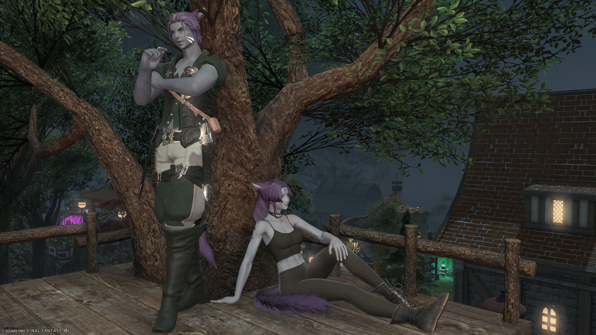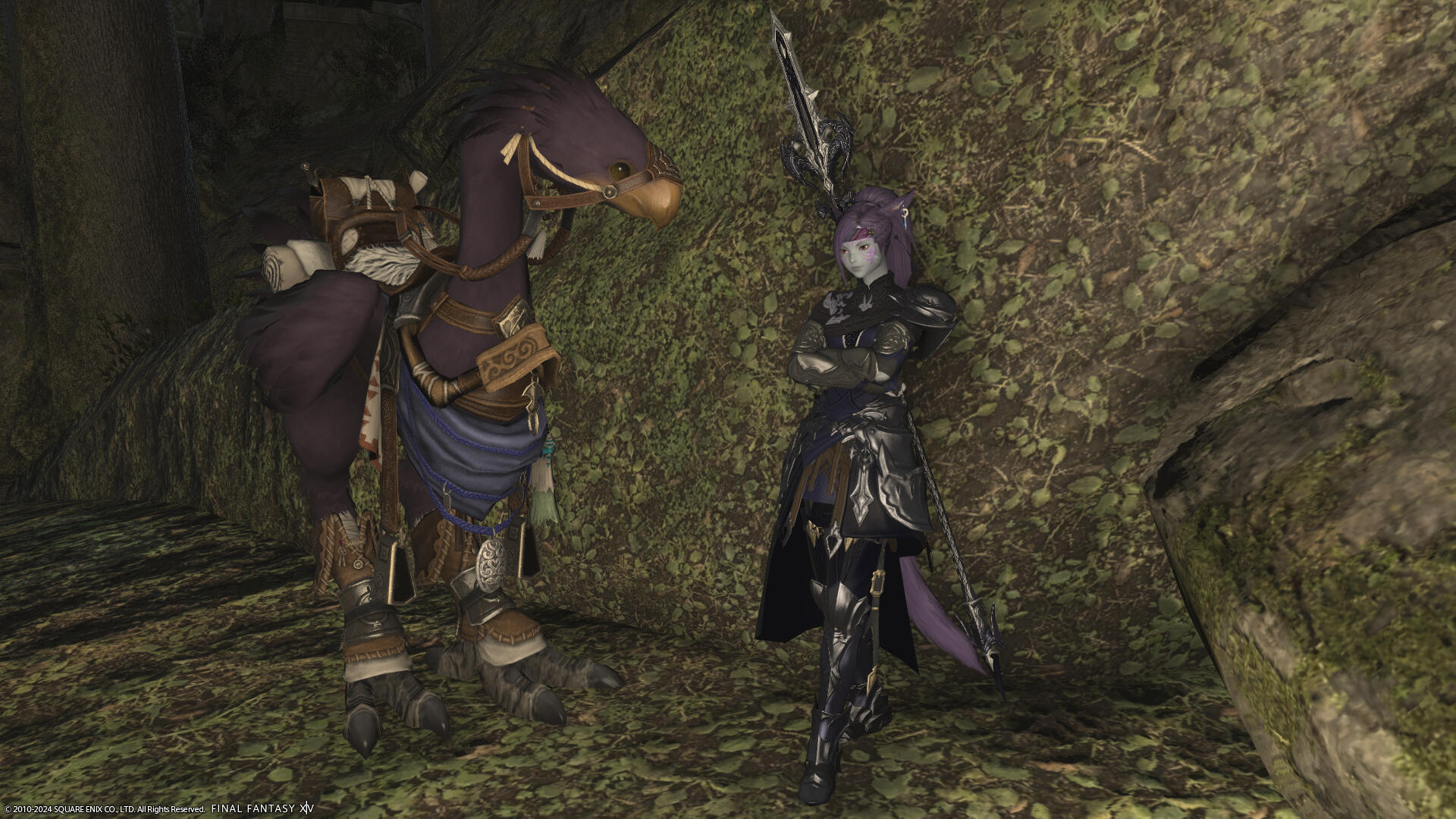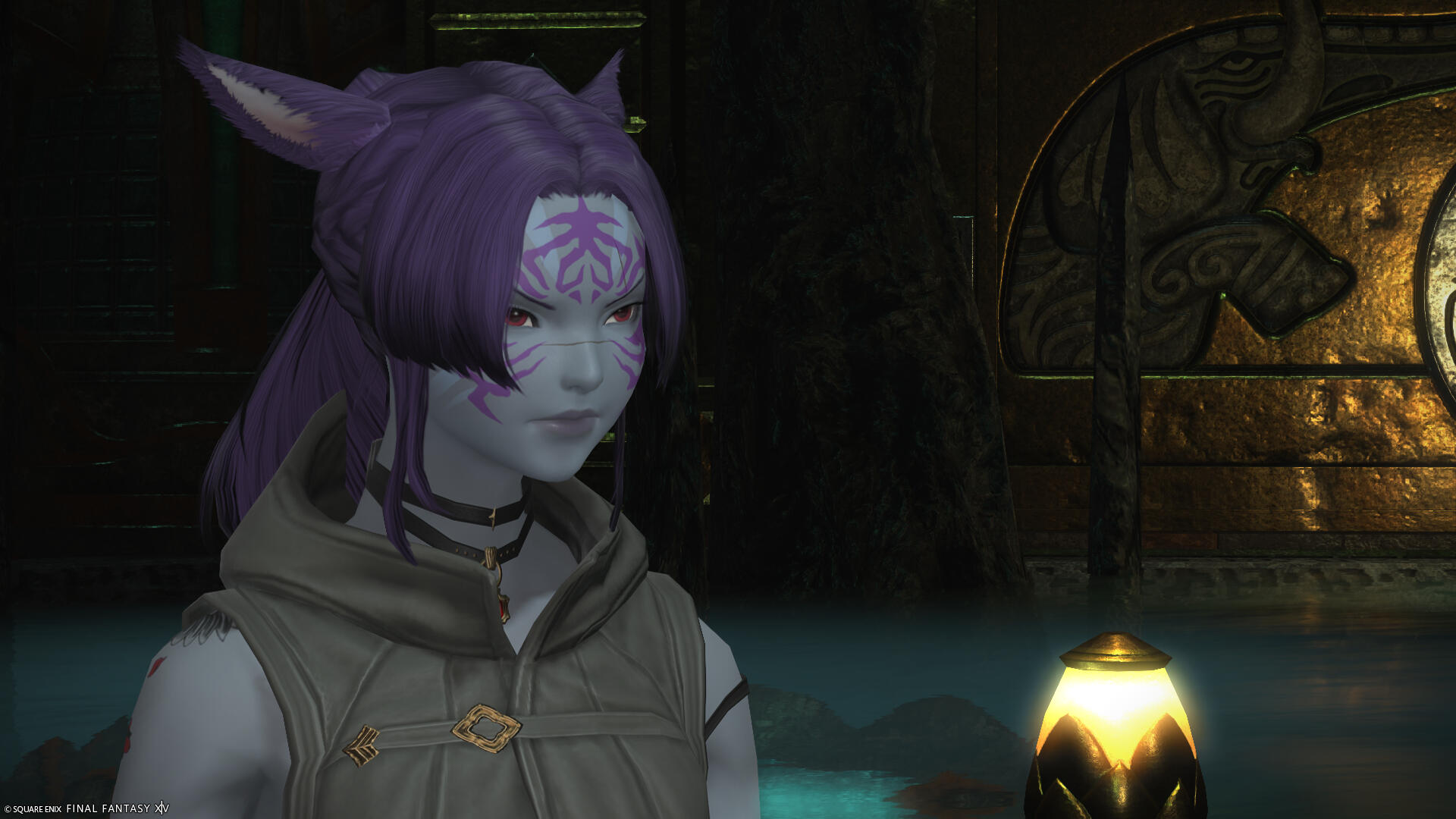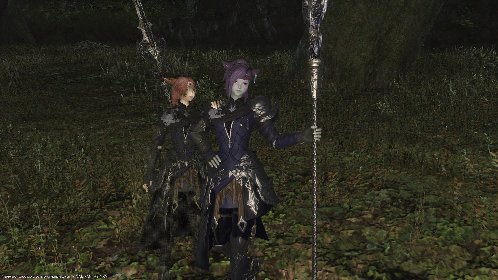 Saeber Hun’lyl” The bottom of the paper is stained by what appears to be a few drops of water, still a little wet as if the letter was placed not too long ago. Her signature was even smeared by the stain. A glance out a nearby window reveals a figure standing at the entrance of the gate, a purple chocobo standing beside her. She rubs at her eyes as she hesitates, standing there looking back at the house, as if she is still trying to decide if she can take those next few steps, before finally turning and disappearing into the darkness of the night. It was only a few hours after Saeber had left the glade that her new family called home that she was found on the road. Jhogu’ra had found her letter and sought her out. The young couple, who had only recently opened their hearts to each other, argued back and forth, the first time she had raised her voice or snapped at him. But he refused to let her go alone, and she eventually relented, with his word that when they reached their destination, he had to listen to her. That out of respect to her former clan, if she asked him to not follow her, he must listen. After a moment in each other’s arms, and a small weight lifted from Saeber’s chest that she wouldn’t be alone, the two set off, turning towards the north. It was a long and arduous journey. What should have taken a few days, a week, to travel from their home in the southern reaches of the Shroud, to the area marked on Saeber’s map in the far northern reaches, took weeks instead. As Jhogu’ra and Saeber entered the wilderness, Saeber’s headaches progressively got worse, sometimes delaying them for a day while she recovered. At no point though would she entertain the thought of turning back. She was determined to see this through, no matter how much pain it was putting her through. As they neared the point of the map, following the river northwards, evidence of the destruction in the region was clear. Now rotted trunks of trees that had been knocked down from the force of the impact that destroyed the Hun’lyl home. But amidst all the ruin, new life was starting to take hold. Grasses and young trees had sprouted and grown in the cycles since the moon fell. The downed trees were helpful in another way. It gave them a direction to go, since they all pointed radially away from where the Shard of Dalamud had crashed. It was the one landmark Jadi’li was able to give them. The Hun’lyl had made their home a malm or so northeast of where the crater was now. When they reached the crater Saeber would collapse, with the worst headache yet. It pained her so much that she would drift in and out of consciousness for a few days. Any time she was awake, what strength she had was mostly spent on arguing with Jhogu’ra about turning back, to head back home that it wasn’t worth it. But she refused to, even while in agony, she feared more that it wouldn’t get better if she did since it had been getting worse before she even left home. Once she had recovered enough, they moved on, though Saeber spoke little. She was in a trance-like state as they made their way northeast. Another few days passed as they searched, before they finally stumbled upon the remains of a small house. There wasn’t much left to it after most of it had been burned away from the fires. Just some stone in the shape of a hearth and remnants of the frame and floor. Tears started to slip from Saeber’s eyes as she walked around, reaching out to feel where the wall once was, moving so she would enter the home as if the door still stood there. “Kihvah.” She whispered as she stood where her friend’s family had made their home. Another week would pass as she explored the ruins. The headaches were gone, but in a way so was Saeber. She seemed to completely dissociate with the modern world as she would take the time to mark out where the homes of the different members of the Hun’lyl lived. She would speak extraordinarily little, only a name as she marked out each place. Sometimes she would dig through the rubble, what she was looking for she never mentioned, but would place where they made their camp little miscellaneous items, trinkets. All the while she would avoid the center of the glade, where remarkably like The Silverwood Glade, there stood the remains of a large tree. It was dead now, most of its branches blown off in the Calamity, but it was one of the few things that still stood after. It wasn’t until she had completed the survey that one-night Jhogu’ra would wake to find her standing in front of the tree looking up at it. "Home.” She would whisper softly pointing up towards the top of the tree. Though hard to see after the devastation and cycles of change, there was evidence, marks on the tree, that something was once built into and around the trunk. Lowering her hand she slowly walked around and knelt, patting the ground a few yalms away from the central tree. “This is where I fell. This is where she took her first breath, knowing nothing but the pain in her head, the burns on her back and the name, Saeber.” It had been the most she had said since waking at the crater. Rising back to her feet she made her way back to the side of the tree that faced the rest of the camp. Stepping slowly closer she looked at the tree and downwards. “Something’s not right. There should be a…” But before she could finish her sentence the ground gave way under her. A moment later a thud and a curse could be heard. “I’m okay.” She called out before standing and dusting herself off. With what little light she had she could make out what was once a tunnel, filled with debris and off to the side framed in the roots of the great tree, a staircase leading back to the surface, though they too were covered in debris. A few minutes, and a rope later, Saeber was back on the surface and gathering a few things. The last thing she pulled out of one of Relic’s packs was one of the lanterns from the glade. After sh