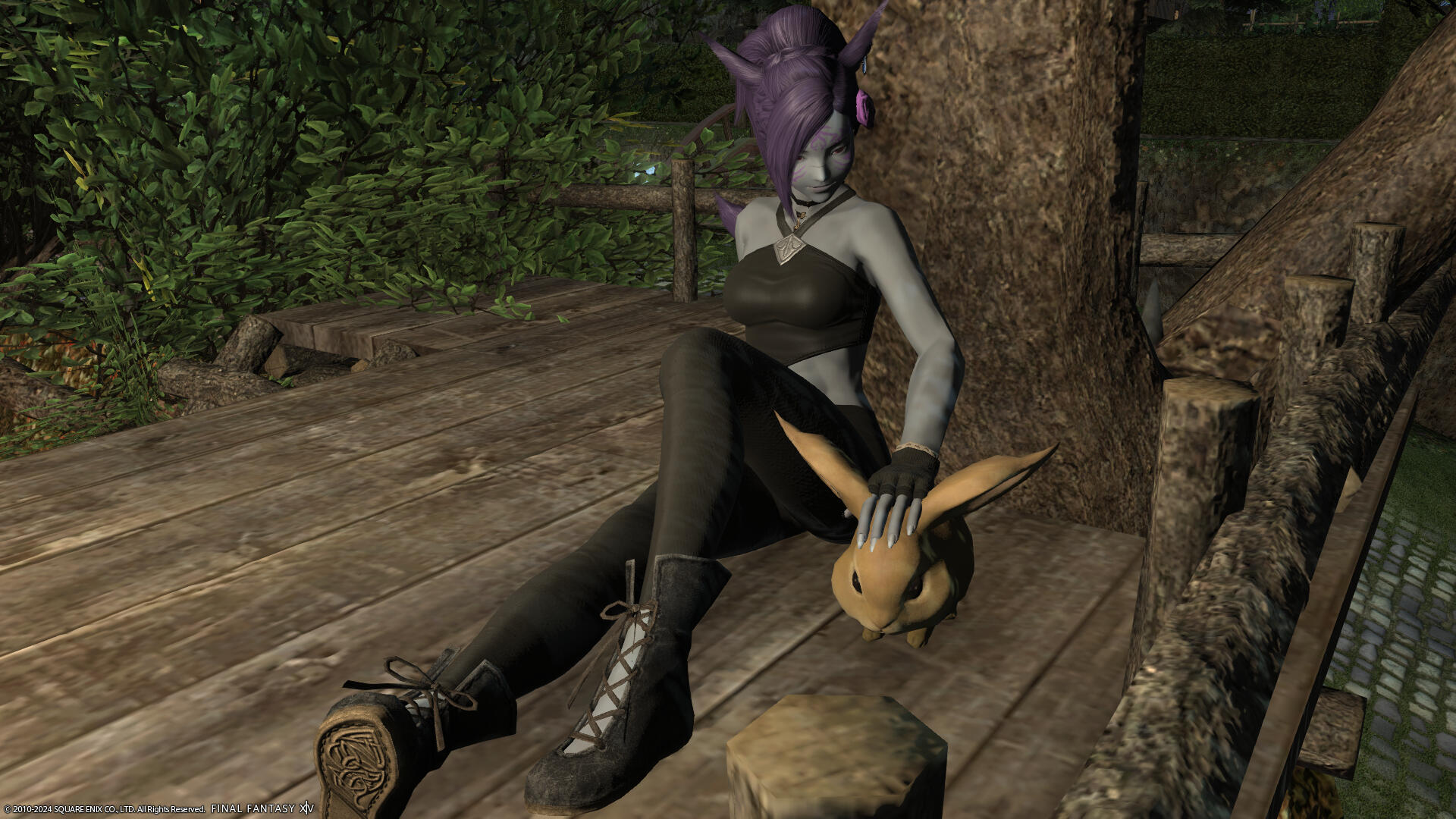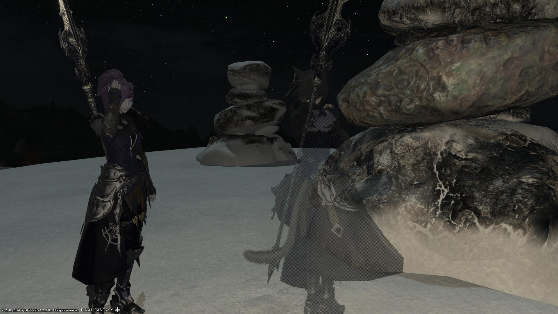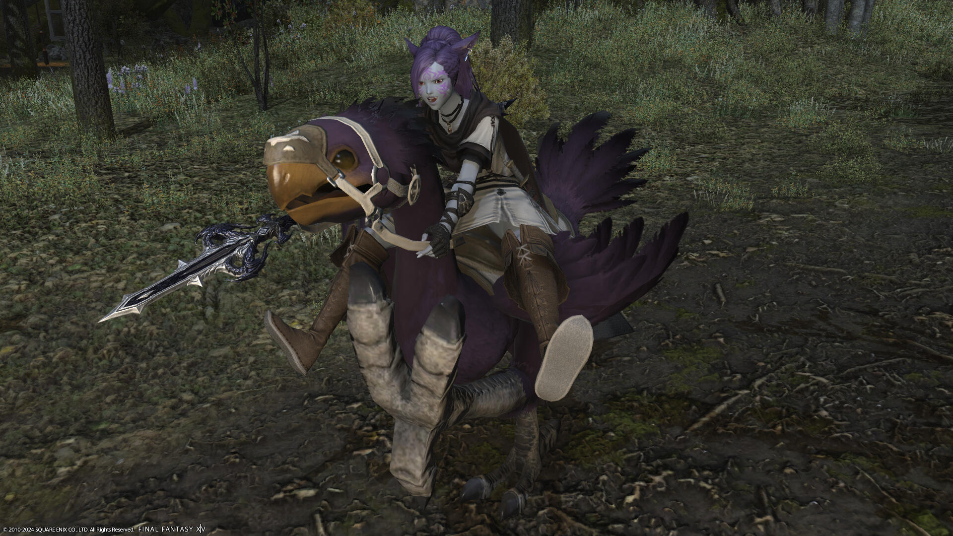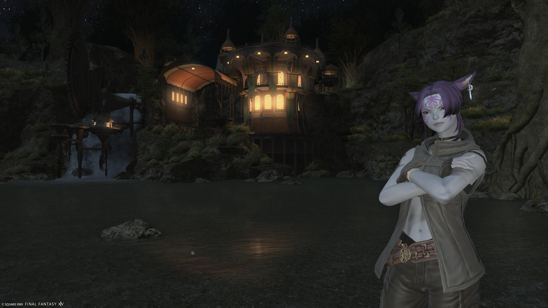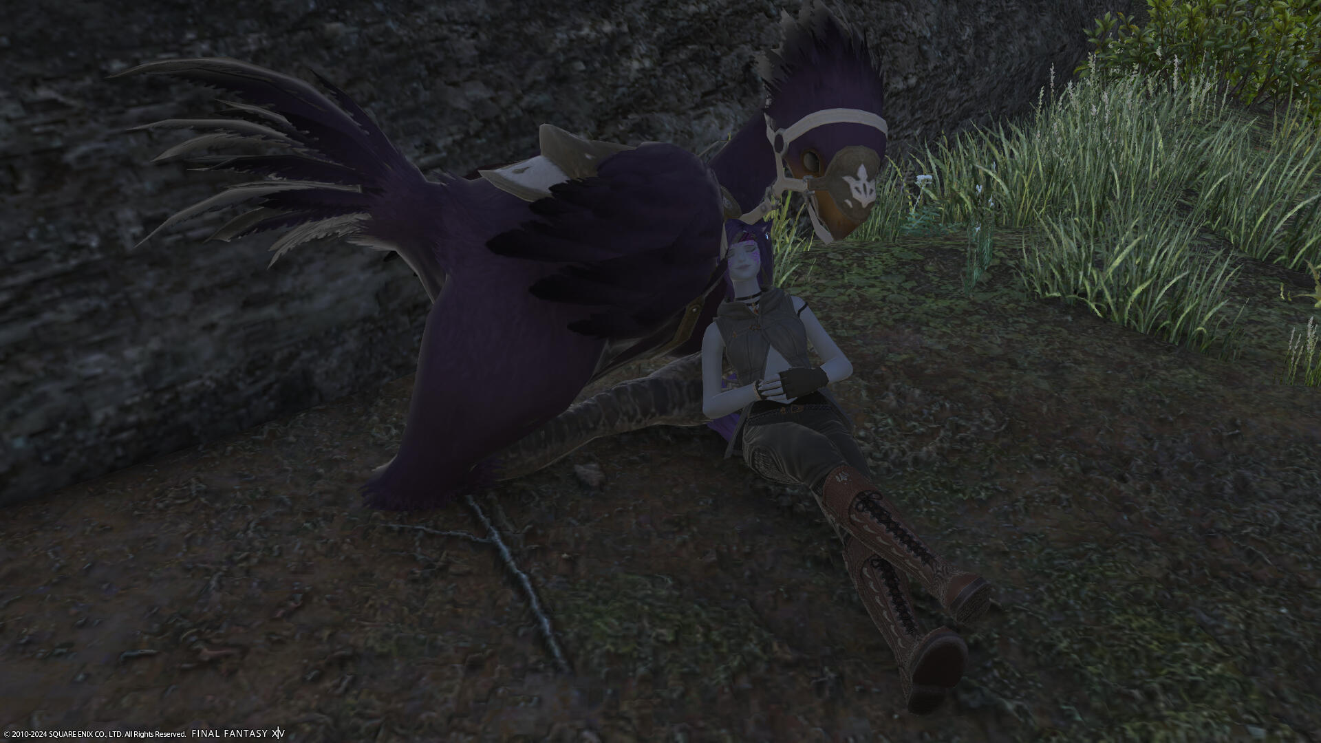 Saeber Hun’lyl” The bottom of the paper is stained by what appears to be a few drops of water, still a little wet as if the letter was placed not too long ago. Her signature was even smeared by the stain. A glance out a nearby window reveals a figure standing at the entrance of the gate, a purple chocobo standing beside her. She rubs at her eyes as she hesitates, standing there looking back at the house, as if she is still trying to decide if she can take those next few steps, before finally turning and disappearing into the darkness of the night. It was only a few hours after Saeber had left the glade that her new family called home that she was found on the road. Jhogu’ra had found her letter and sought her out. The young couple, who had only recently opened their hearts to each other, argued back and forth, the first time she had raised her voice or snapped at him. But he refused to let her go alone, and she eventually relented, with his word that when they reached their destination, he had to listen to her. That out of respect to her former clan, if she asked him to not follow her, he must listen. After a moment in each other’s arms, and a small weight lifted from Saeber’s chest that she wouldn’t be alone, the two set off, turning towards the north. It was a long and arduous journey. What should have taken a few days, a week, to travel from their home in the southern reaches of the Shroud, to the area marked on Saeber’s map in the far northern reaches, took weeks instead. As Jhogu’ra and Saeber entered the wilderness, Saeber’s headaches progressively got worse, sometimes delaying them for a day while she recovered. At no point though would she entertain the thought of turning back. She was determined to see this through, no matter how much pain it was putting her through. As they neared the point of the map, following the river northwards, evidence of the destruction in the region was clear. Now rotted trunks of trees that had been knocked down from the force of the impact that destroyed the Hun’lyl home. But amidst all the ruin, new life was starting to take hold. Grasses and young trees had sprouted and grown in the cycles since the moon fell. The downed trees were helpful in another way. It gave them a direction to go, since they all pointed radially away from where the Shard of Dalamud had crashed. It was the one landmark Jadi’li was able to give them. The Hun’lyl had made their home a malm or so northeast of where the crater was now. When they reached the crater Saeber would collapse, with the worst headache yet. It pained her so much that she would drift in and out of consciousness for a few days. Any time she was awake, what strength she had was mostly spent on arguing with Jhogu’ra about turning back, to head back home that it wasn’t worth it. But she refused to, even while in agony, she feared more that it wouldn’t get better if she did since it had been getting worse before she even left home. Once she had recovered enough, they moved on, though Saeber spoke little. She was in a trance-like state as they made their way northeast. Another few days passed as they searched, before they finally stumbled upon the remains of a small house. There wasn’t much left to it after most of it had been burned away from the fires. Just some stone in the shape of a hearth and remnants of the frame and floor. Tears started to slip from Saeber’s eyes as she walked around, reaching out to feel where the wall once was, moving so she would enter the home as if the door still stood there. “Kihvah.” She whispered as she stood where her friend’s family had made their home. Another week would pass as she explored the ruins. The headaches were gone, but in a way so was Saeber. She seemed to completely dissociate with the modern world as she would take the time to mark out where the homes of the different members of the Hun’lyl lived. She would speak extraordinarily little, only a name as she marked out each place. Sometimes she would dig through the rubble, what she was looking for she never mentioned, but would place where they made their camp little miscellaneous items, trinkets. All the while she would avoid the center of the glade, where remarkably like The Silverwood Glade, there stood the remains of a large tree. It was dead now, most of its branches blown off in the Calamity, but it was one of the few things that still stood after. It wasn’t until she had completed the survey that one-night Jhogu’ra would wake to find her standing in front of the tree looking up at it. "Home.” She would whisper softly pointing up towards the top of the tree. Though hard to see after the devastation and cycles of change, there was evidence, marks on the tree, that something was once built into and around the trunk. Lowering her hand she slowly walked around and knelt, patting the ground a few yalms away from the central tree. “This is where I fell. This is where she took her first breath, knowing nothing but the pain in her head, the burns on her back and the name, Saeber.” It had been the most she had said since waking at the crater. Rising back to her feet she made her way back to the side of the tree that faced the rest of the camp. Stepping slowly closer she looked at the tree and downwards. “Something’s not right. There should be a…” But before she could finish her sentence the ground gave way under her. A moment later a thud and a curse could be heard. “I’m okay.” She called out before standing and dusting herself off. With what little light she had she could make out what was once a tunnel, filled with debris and off to the side framed in the roots of the great tree, a staircase leading back to the surface, though they too were covered in debris. A few minutes, and a rope later, Saeber was back on the surface and gathering a few things. The last thing she pulled out of one of Relic’s packs was one of the lanterns from the glade. After sh