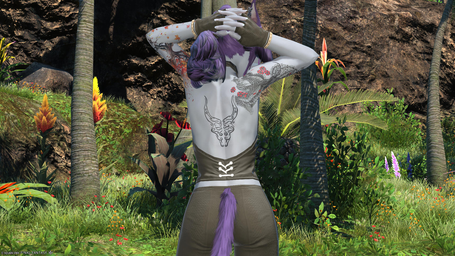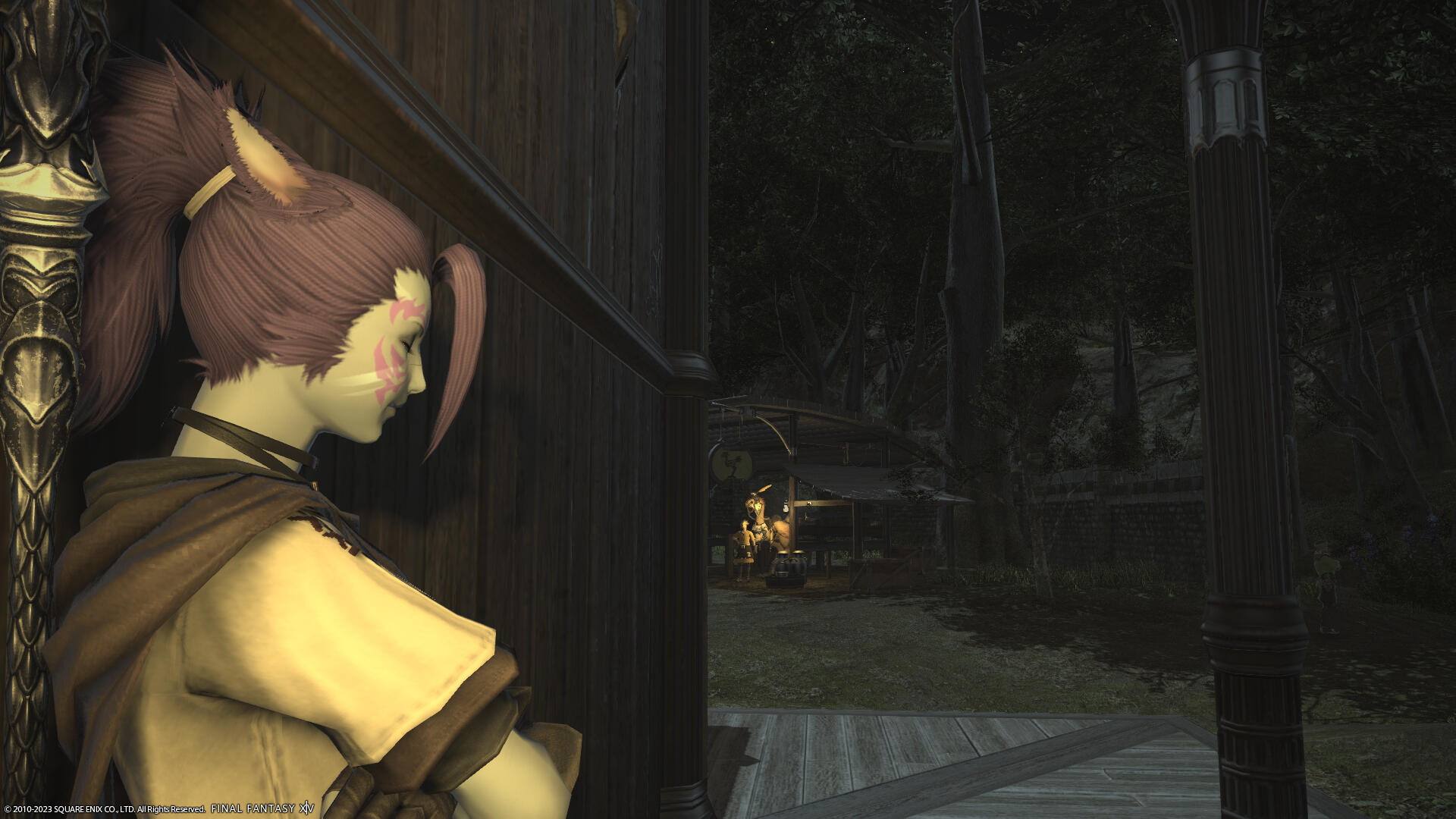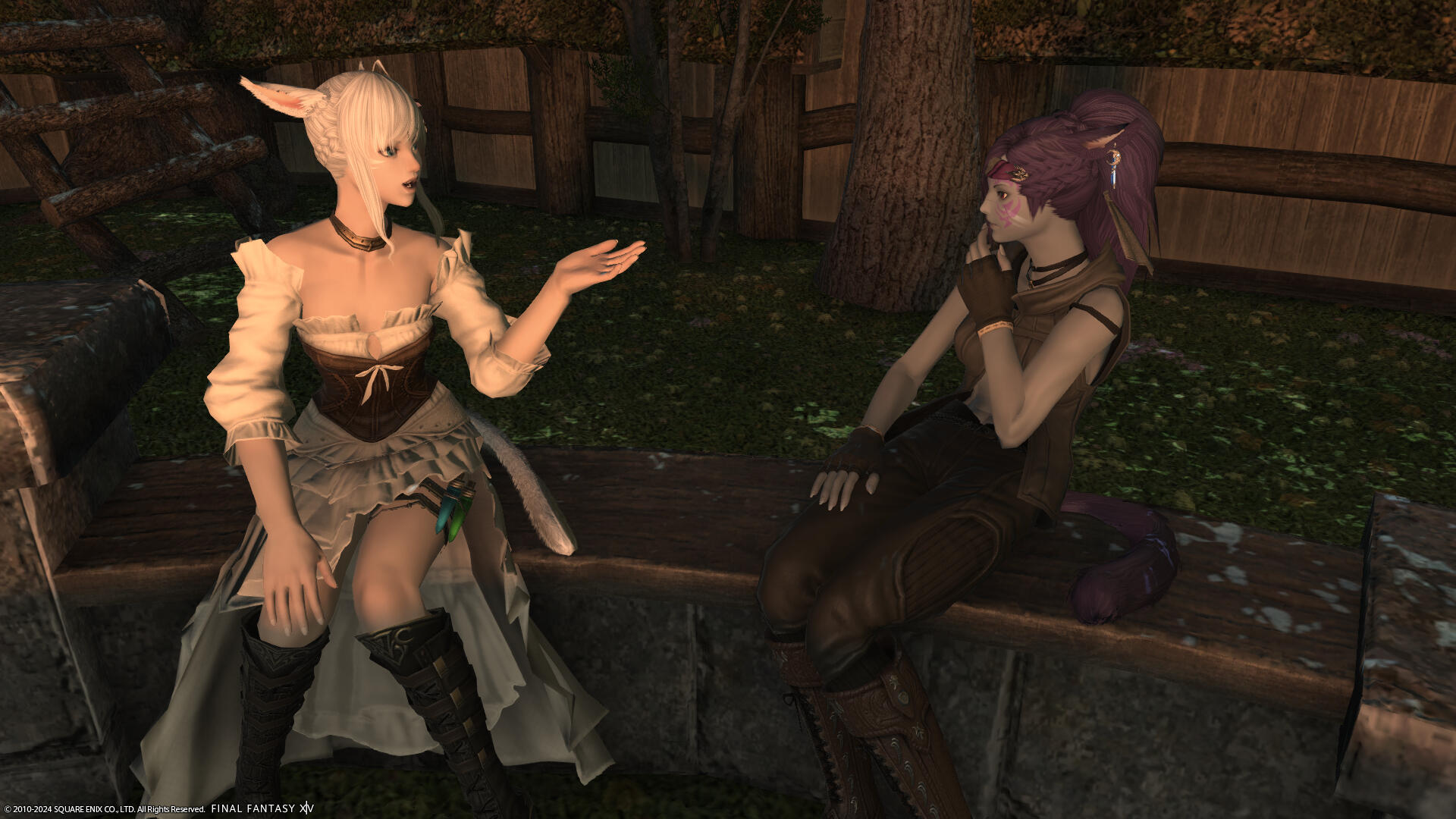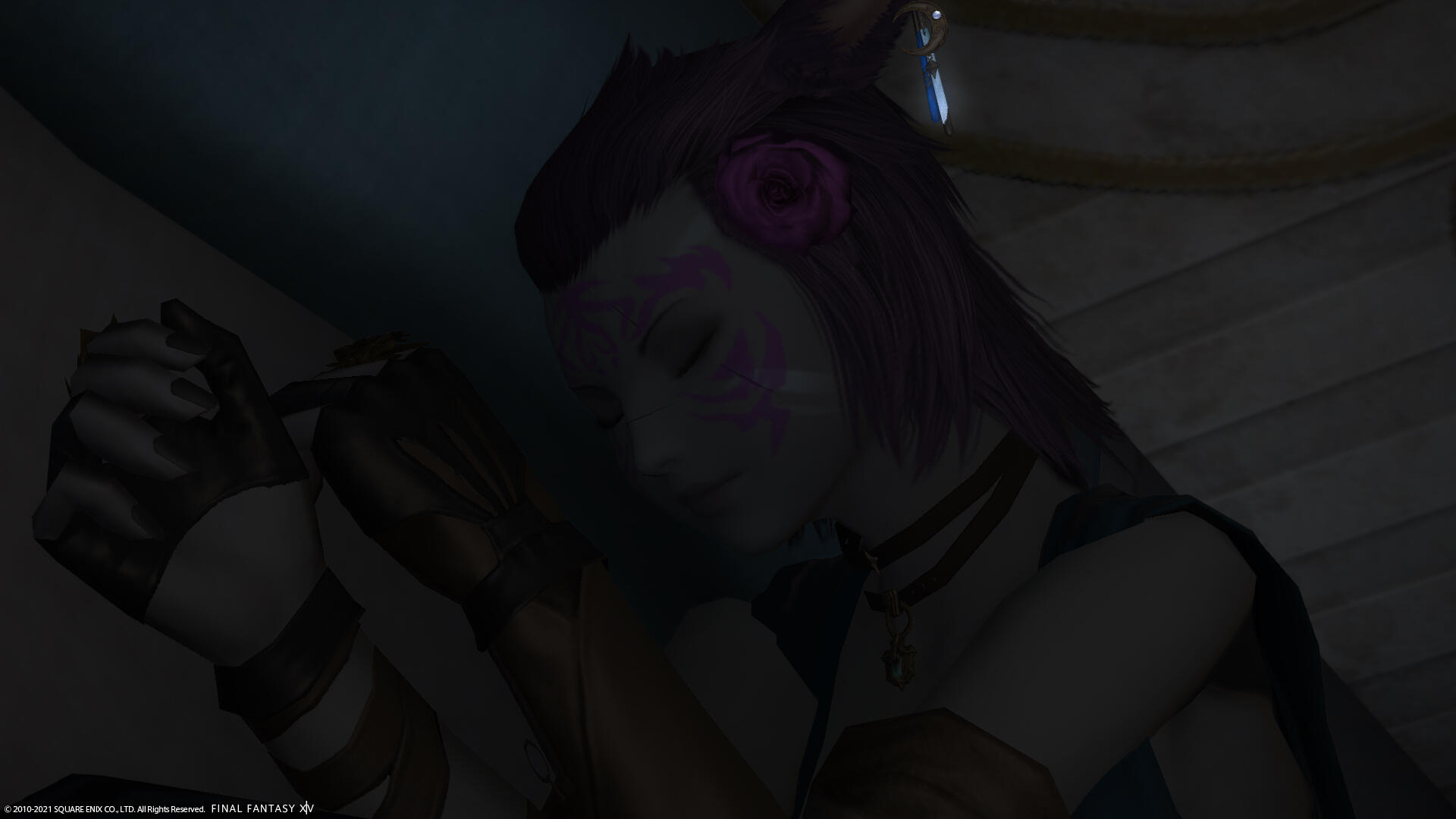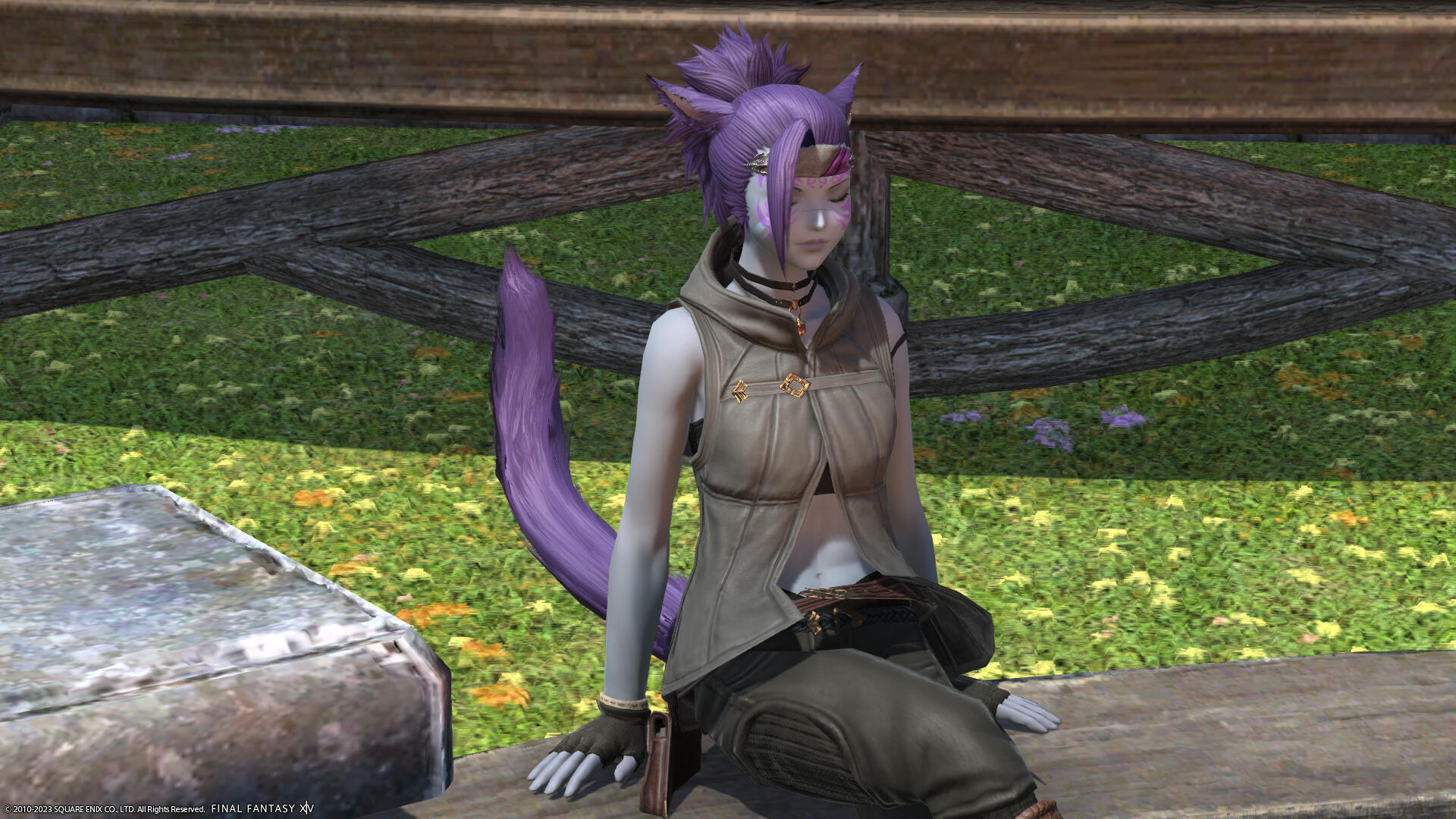 Unforgotten They were all giants around her. Saeber’s crimson eyes were wide watching the scene before her. On one side of the desert field was the priestess and the swordman, ripping each other apart. The blood that soaked the ground was slowly creeping towards her. On the other side of the field, the monk and the mage held their titanic duel. The ground ripped asunder, holding the monk in the sky, ice and fire whipping around them all. Between the combatants and Saeber were all the others. Friends, companions, and strangers alike – all cheering on the carnage in front of them - parted just enough she could watch it unfold. Her eyes darted between the two battles, her mind barely able to follow what was happening before her, let alone comprehend it. They just continued, and grew larger, while she grew smaller. Finally, as the blood-soaked ground reached her feet, hands reached out and gripped her ankles. As she tried to pull away, she noticed the crowd parting and the monk held high above them, turning towards Saeber. With a cruel smile he raised his glowing hand and let loose the aether stored within him, the beam of light flew towards the captive Miqo’te. The white light turned red, like the fires of Dalamud, before it reached her. With a scream, she reflexively grabbed the stock of her lance and brought it in front of her as she sat up. Gulping for air, face slick with sweat, she prepared for the end that never came. Slowly her eyes opened, and she found herself staring at the clan house in front of her. A few deep breaths later, she dropped the lance to the floor of the tree stand she was sleeping in and pushed back to lean against the trunk of the tree. After a few more moments as she felt the adrenaline fade from her system and pushed herself to her feet. Looking upwards to the sky she sighed heavily, still several bells before dawn. “Why am I here?” she spoke softly to herself as her gaze fell upon the house once more. With a sigh she leaned down to pick her lance back up and slung it over her shoulder. Quietly she descended the ladder of the tree stand. With one last glance at the house, she pulled the linkshell out of her ear and slipped it into a pouch before heading down the flight of stairs to the road. For several bells she wandered the roads and trails of the Shroud, letting her feet take her in whatever direction they chose. Her mind was lost in the turmoil, replaying over-and-over in her head what she saw that day. How she couldn’t do anything but step away in fear. How useless she would have been if her friends needed her. She didn’t even know how to give her aether to those who could even do something useful with it. To make matters worse, they were just duels, if it was a real battle, she probably would have gotten one of her friends killed trying to protect her rather than helping. Every step she took, every time she tried to figure out what she could do different, she grew more frustrated and angrier. As her anger turned into rage she struck out, punching a nearby tree. The sudden pain in her hand helping bring her back to reality and to where she was now, deep in the southern region of the Shroud. Her anger faded and an ache rose in her chest as her eyes slipped down, seeing a cycles old scar, as something had cut deep into the flesh of the tree. With a trembling breath, one word slipped from Saeber’s lips, “Kihvah.” Stepping back from the tree, Saeber’s heel caught a root, causing her to uncharacteristically fall to the ground. She looked up at the tree and blinked as flashes of another Keeper with short black hair, impaled to a tree by a lance, life fading from her azure eyes seemed to appear before her. “No. Kihvah. I’m sorry,” she said silently as she crawled backwards, the past and the present overlapping. In the past her hand, landed on top of a Coeurclaw mask, cracked and covered in blood - though in the present there was nothing there, only her fingers still curl around air. “I’m sorry, I’m sorry, I’m sorry,” She repeated over-and- over again until the past and present diverge, with her past-self running away. With a groan she pushed herself back to her feet, rubbing her eyes, as she forced herself to focus on the present once more. With a large sigh she reached down to her side and opened the pouch that was there and pulled out the mask, leaving another smaller, but intact one inside. Slowly, Saeber turned the mask in her hands as she walked up to the tree. For a few moments, her eyes stared at it before she reached out to loosen a strip of bark, large enough that she could hang the mask from it. Taking a step back she sat on the ground and looked up at the mask tilting her head slightly. “Hi Kihvah…been long time hasn’t it?” Leaning back placing her hands on the ground behind her she continued to look up at the mask. “Sorry I haven’t been around. Not since…well you know. Don’t know why I’m here now, talking to an old broken mask…” With another deep breath she shook her head. “Found some people…in way a lot like you…or at least what I thought you were like. Well, you were like…till you took me to him.” Saeber’s ears flattened and her tail thumped hard on the ground at the very thought. “They…especially one, they helped me…not as afraid anymore…well least I wasn’t, not since a couple days ago.” With a heavy sigh Saeber shifted her weight forward and crossed her legs, before leaning forward and resting her arms on them. “Went to this gathering, were duels. What saw there. Just don’t know how to explain. There was this energy in the air, but so intense. Couldn’t do anything. If something happened…would be putting them at risk.” Another heavy sigh as she looked down at the ground in front of her. “I’m sorry…not even you…at least what showed me could compare to any of them. Still don’t know how I…how I…” Her eyes lifted, tears filling the edges as she l